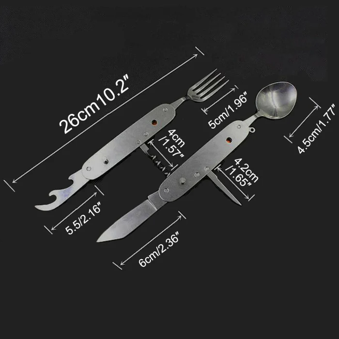 Функция: вилка, ложка, резак, открывалка для бутылок, консервный нож, вино, открывалка для бутылок