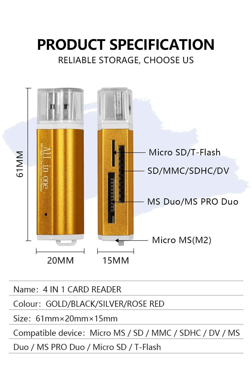 Лидер продаж USB ридер со вспышкой красочные USB 2,0 все/мульти в 1 адаптер для чтения карт памяти для картридер 2 микро-sd TF M2 MMC лучшие подарки