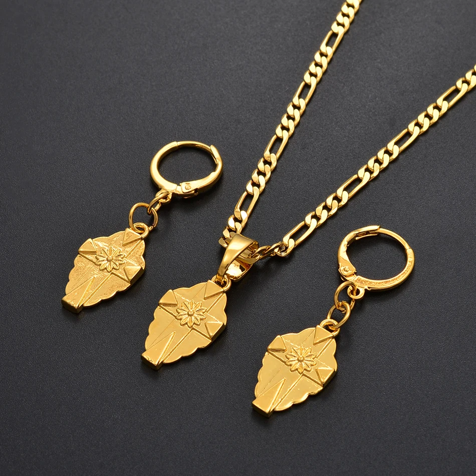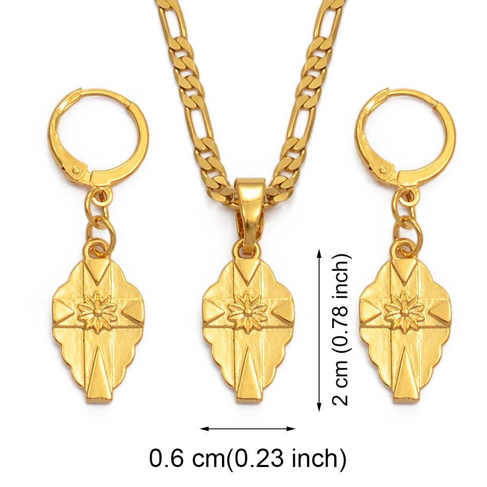 Отзывы о Набор женских серег и ожерелий с маленьким крестом Anniyo золотистого цвета