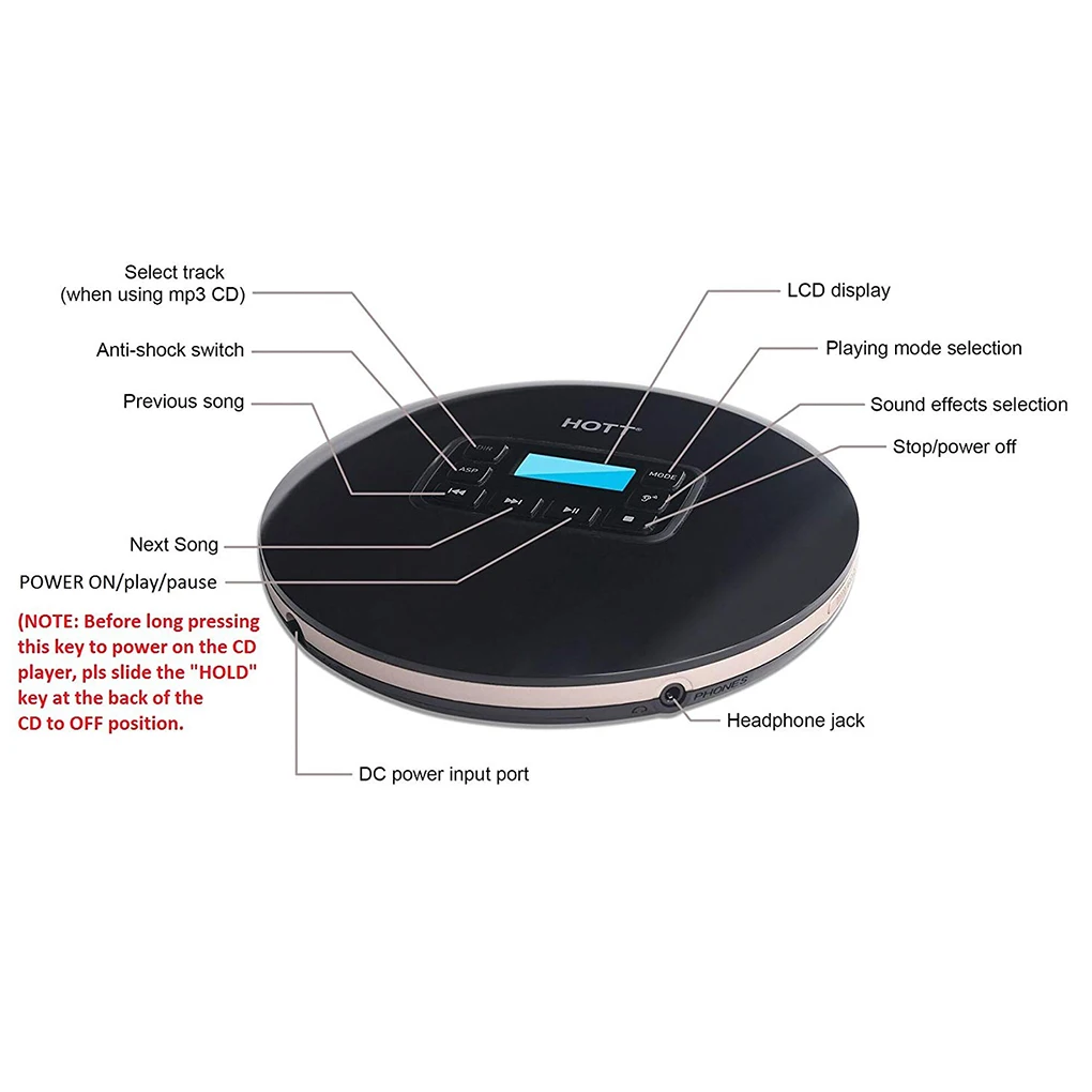 Компактный cd-проигрыватель имеет функцию 5 эквалайзеров: поддержка pop, jazz, Classic, rock, bbs. Вы можете выбрать звуковой эффект, чтобы дать вам Лучшее музыкальное удовольствие.