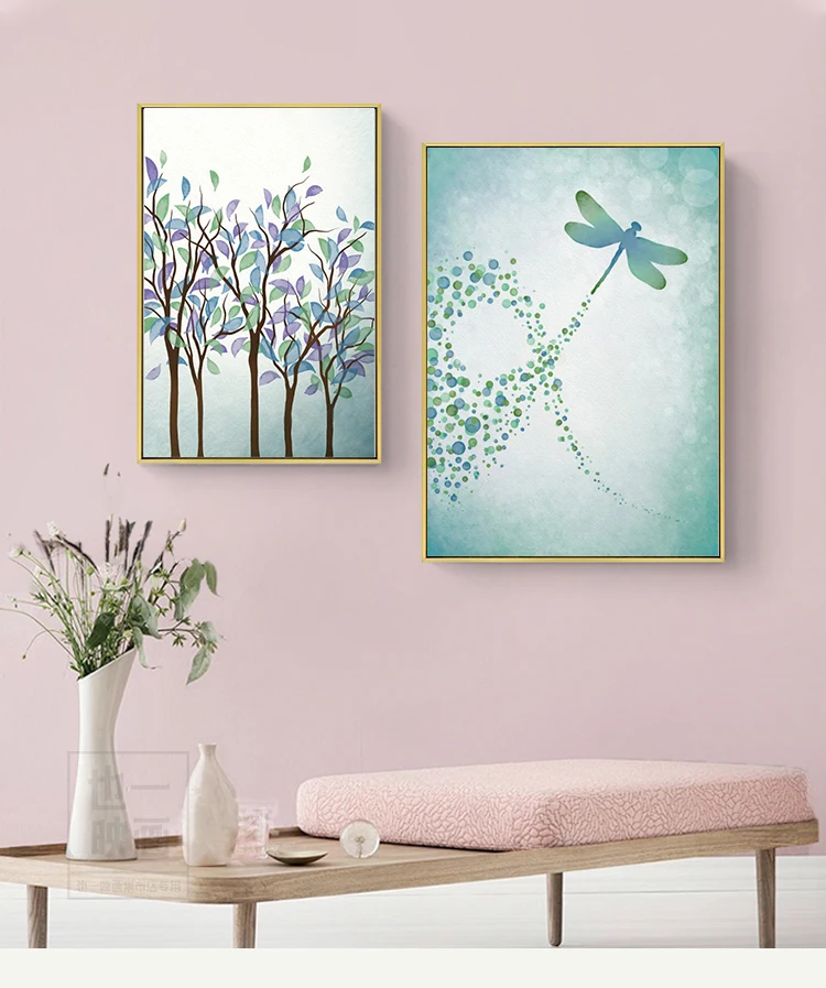 Отзывы о Акварельные листья стрекоза холст картина скандинавские мечтательные плакаты и