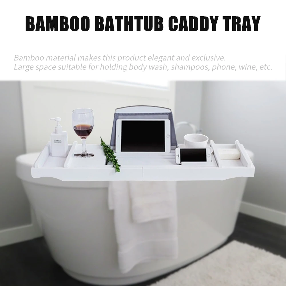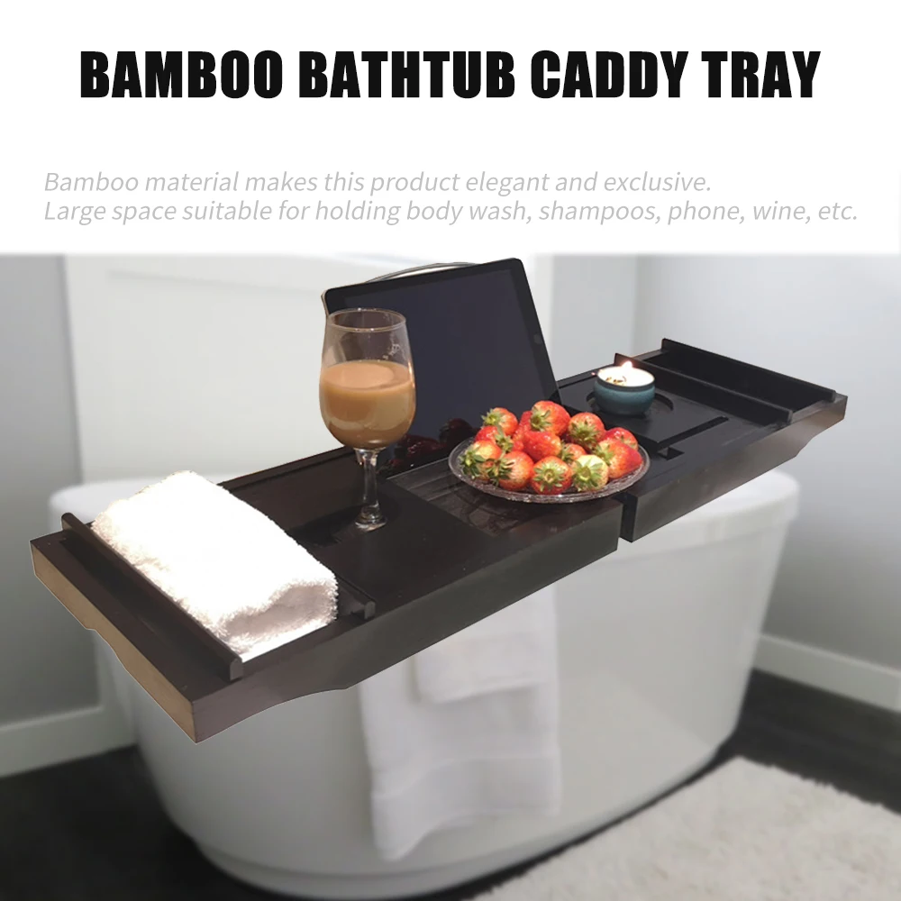 Лоток для ванны изготовлен из бамбука, покрыт слоем лака для длительного использования. Ванна caddy лоток с стойка для чтения и держатель вина для спа аксессуаров. Специально разработанный растягивающийся лоток для ванны caddy подходит для большинства ванн, доступных на рынке. Поднос для ванны предназначен для всех ваших потребностей.