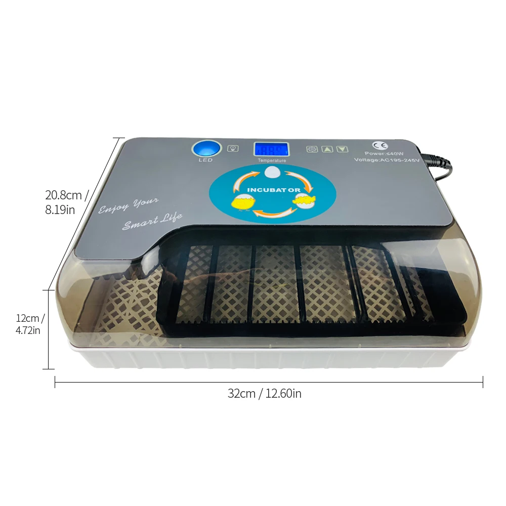 Poultry Hatcher: for hatching chicken eggs(12pcs), duck eggs(9pcs), goose eggs(4pcs), pigeon eggs(24pcs), quail eggs(35pcs), etc.