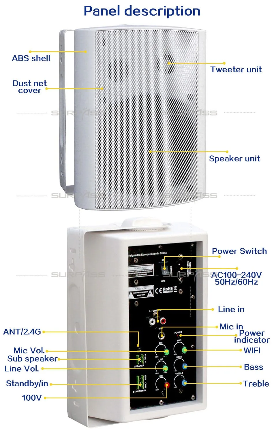 Активный настенный динамик Встроенный микрофон и усилитель Bluetooth Многофункциональный активный настенный динамик описание и особенности:
