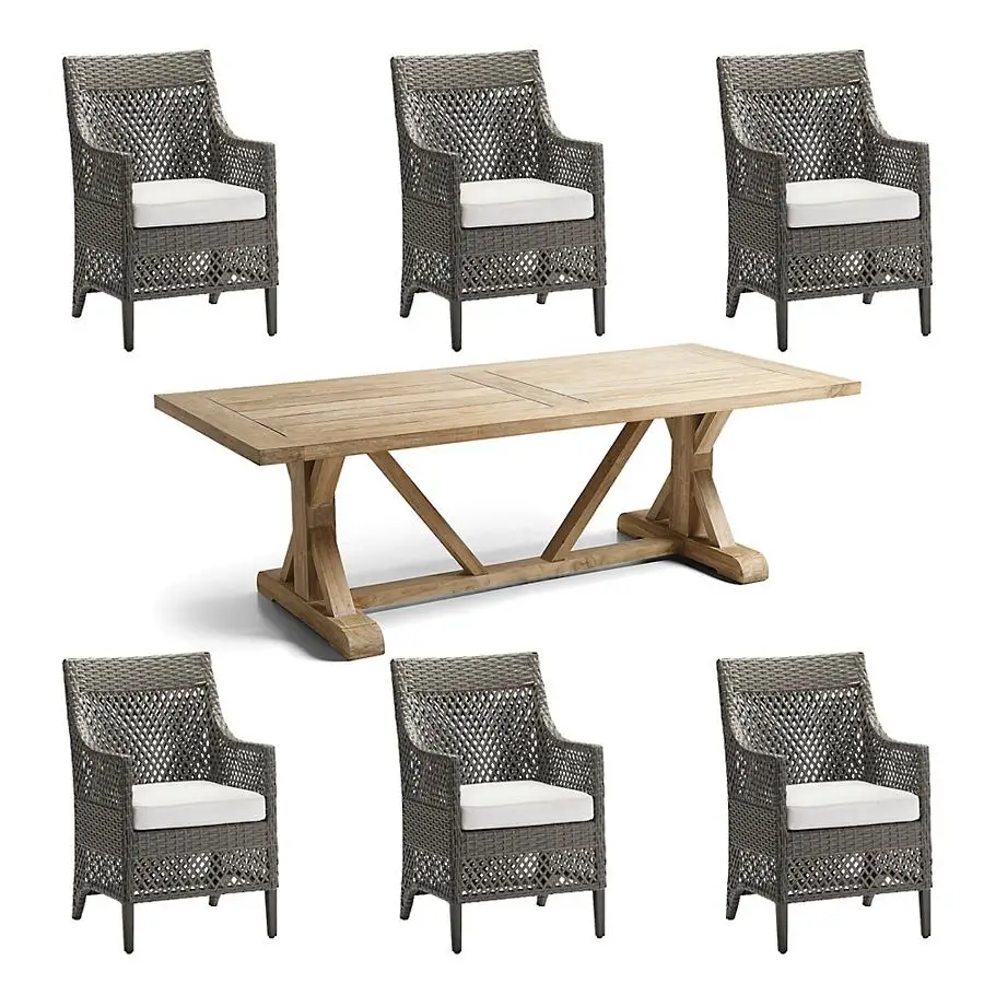 Сада НАБОРЫ ротанговой мебель патио плетеные наборы Новогоднее украшение из ротанга и из тикового дерева обеденный стол и стул наборы для ухода за кожей