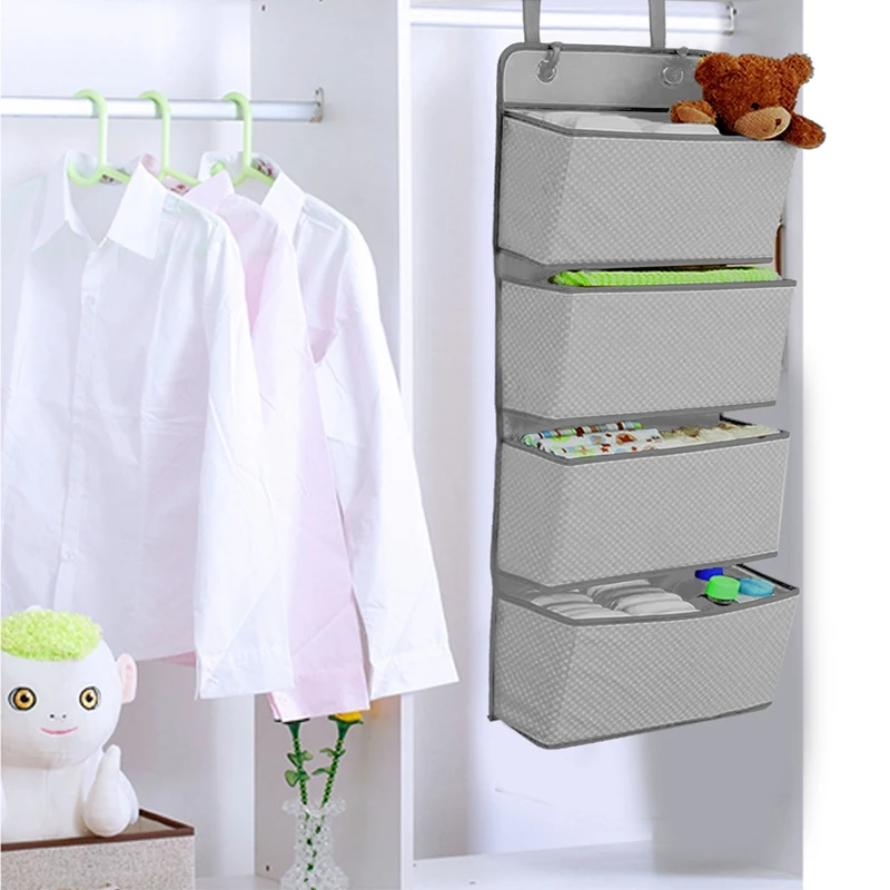 Настенный шкаф для хранения: шкаф для шкафа чехол. домашний Органайзер: вешалка для одежды, контейнер для шкафа. с 4 большими карманами, он предлагает достаточно места для хранения одежды и аксессуаров, таких как игрушки, полотенца, журналы, детская обувь и шляпы.