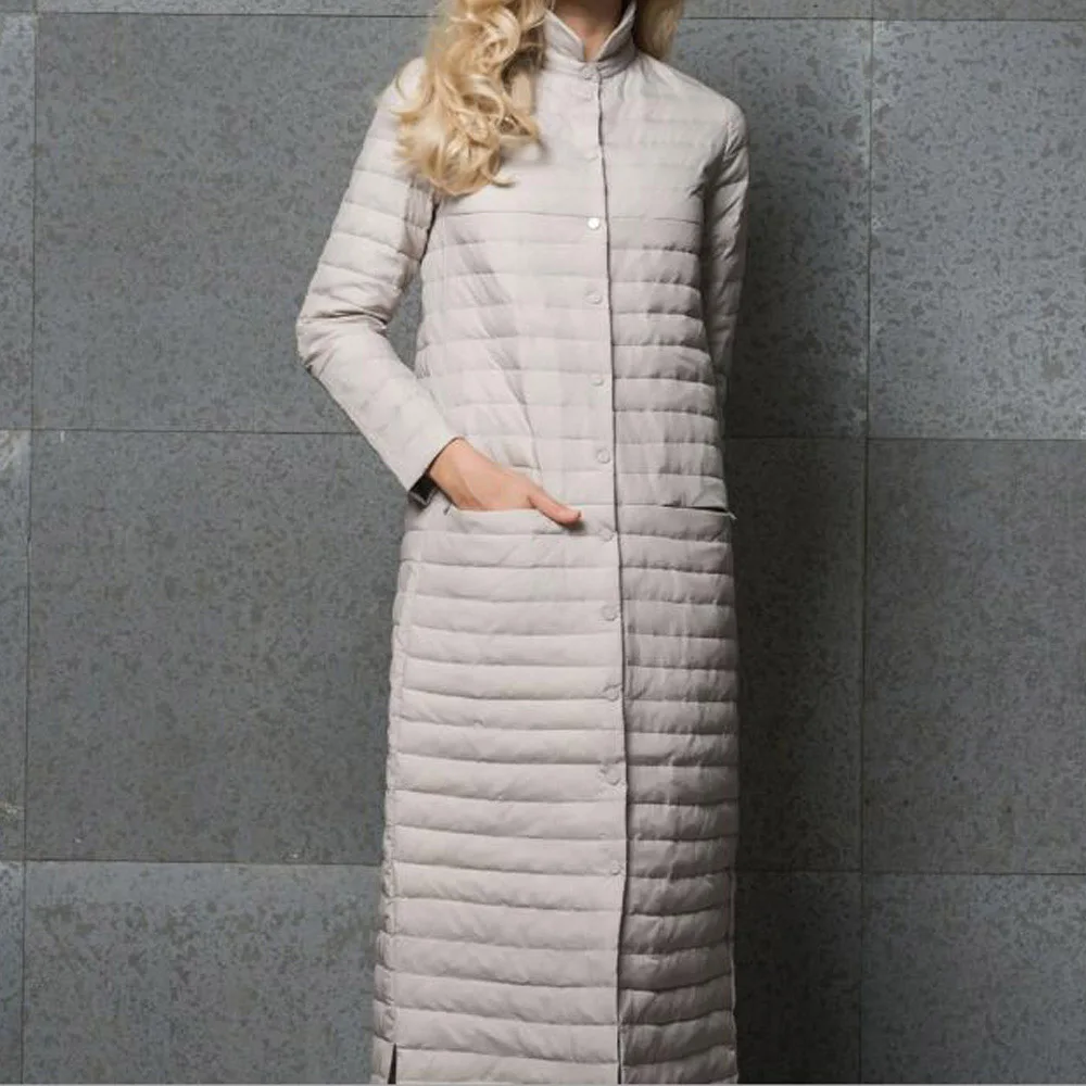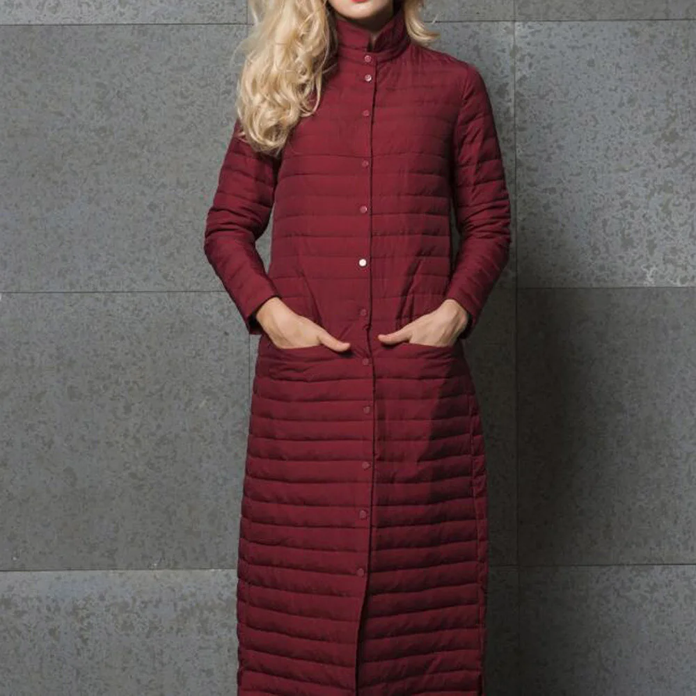 Отзывы о Женский длинный пуховик на белом утином пуху однобортная теплая парка пуговицах