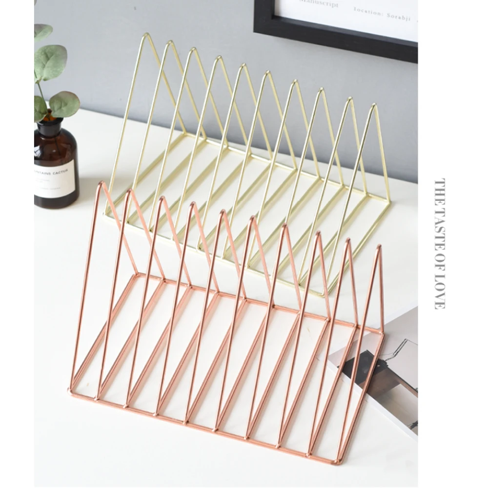 Книжная полка металлическая треугольная настольная стойка для хранения книг органайзер для файлов медная проволочная стойка для журналов органайзер для документов для офиса школы дома