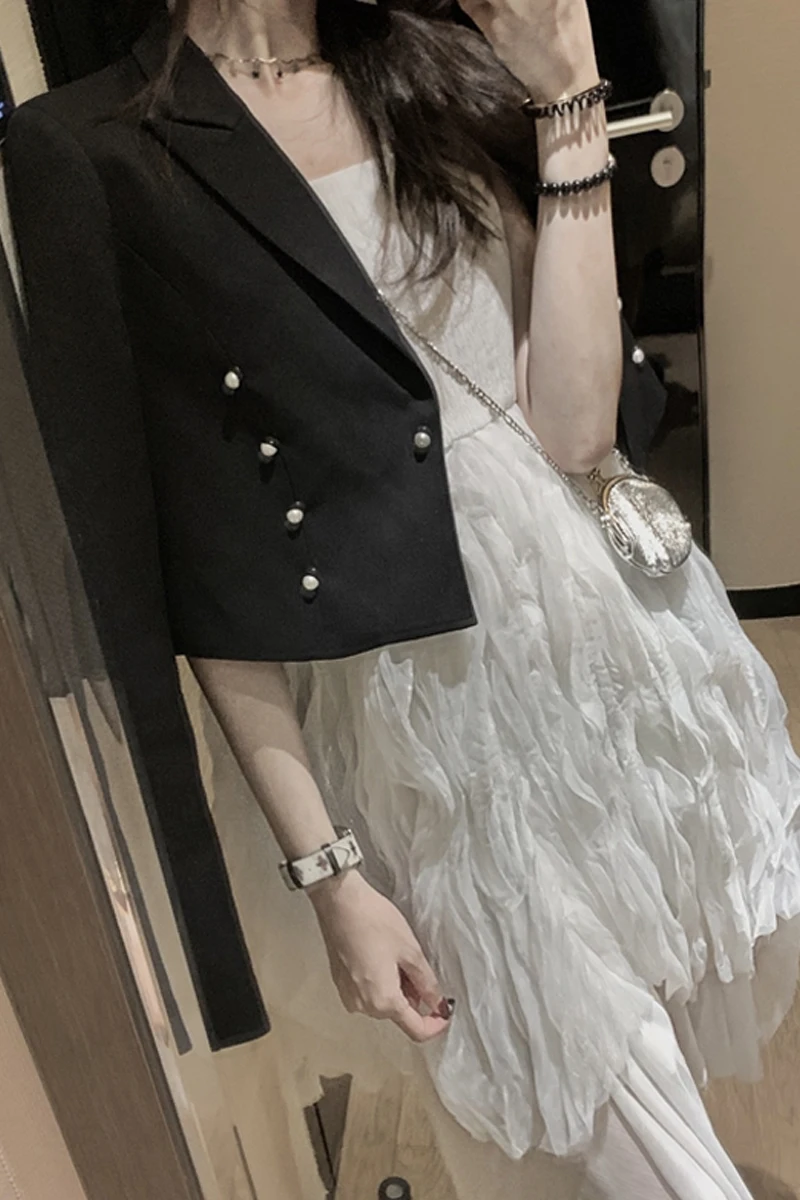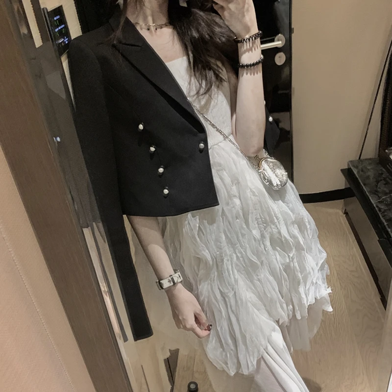 Отзывы о Ранняя осень костюм женщина 2019 новый ретро короткий пальто сетчатый Слинг платье