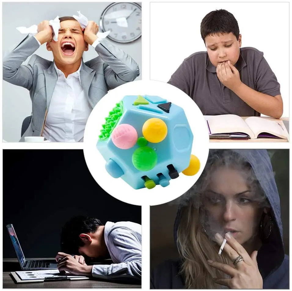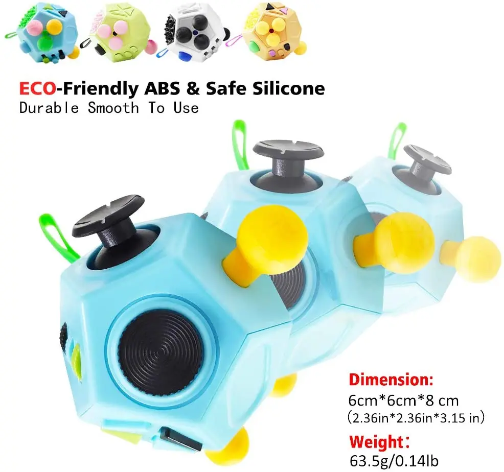 12 Сторон Dodecagon структура-с 12 Сторон для вас, чтобы нажать, вращать, катать, щелкать, вращать и т. д., который icluding вращающийся диск, джойстик, беспокоиться паз, переключатель, Мягкий кликер, кремнеземная веревка, раздвижные блоки, мягкие почки, шестерни, треугольная кнопка, массаж пальцев и мяч для снятия стресса всего 12 различных способов для расслабления