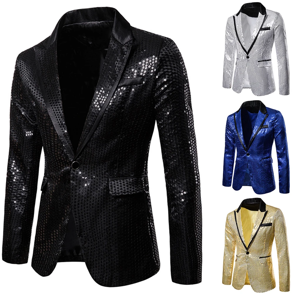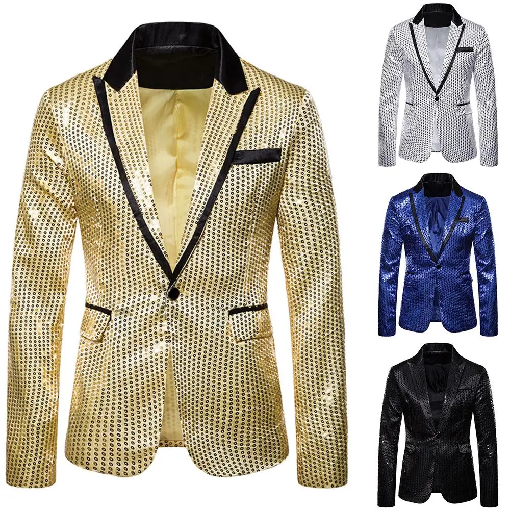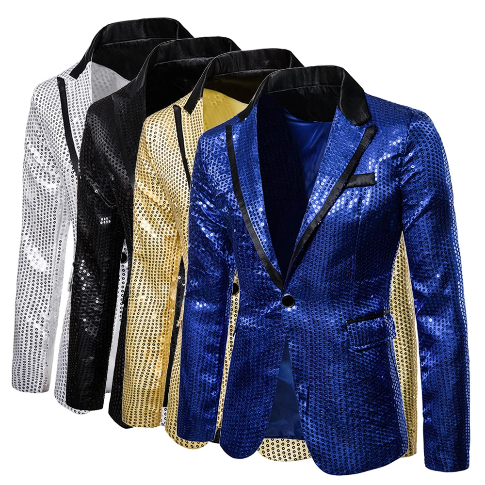 Отзывы о Для мужчин блестящие золотые блестки блеск украшенный Блейзер Куртка для