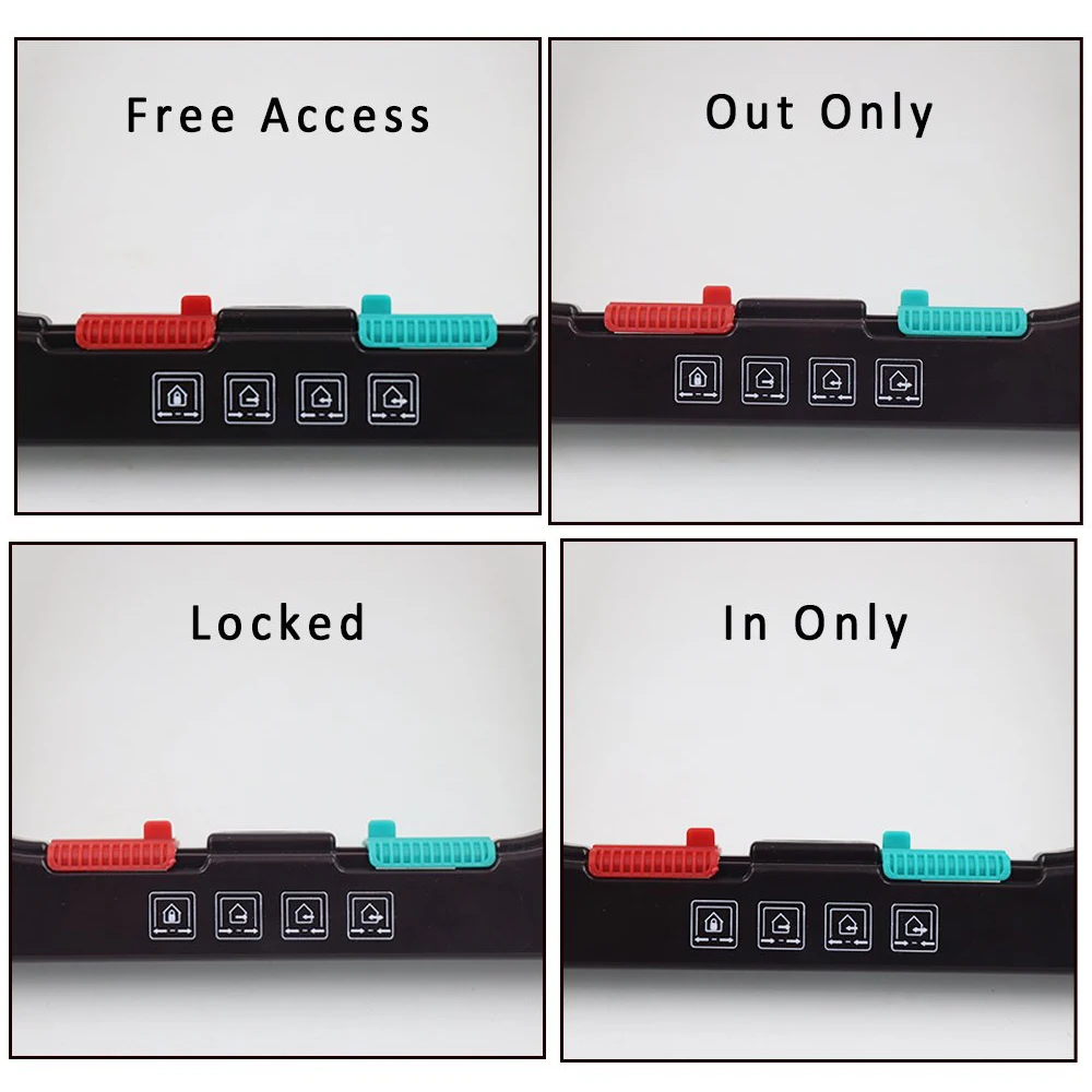 Поверните красные и зеленые переключатели на левую сторону, Питомцу разрешается выходить из дома, но предотвращает вход в дом.