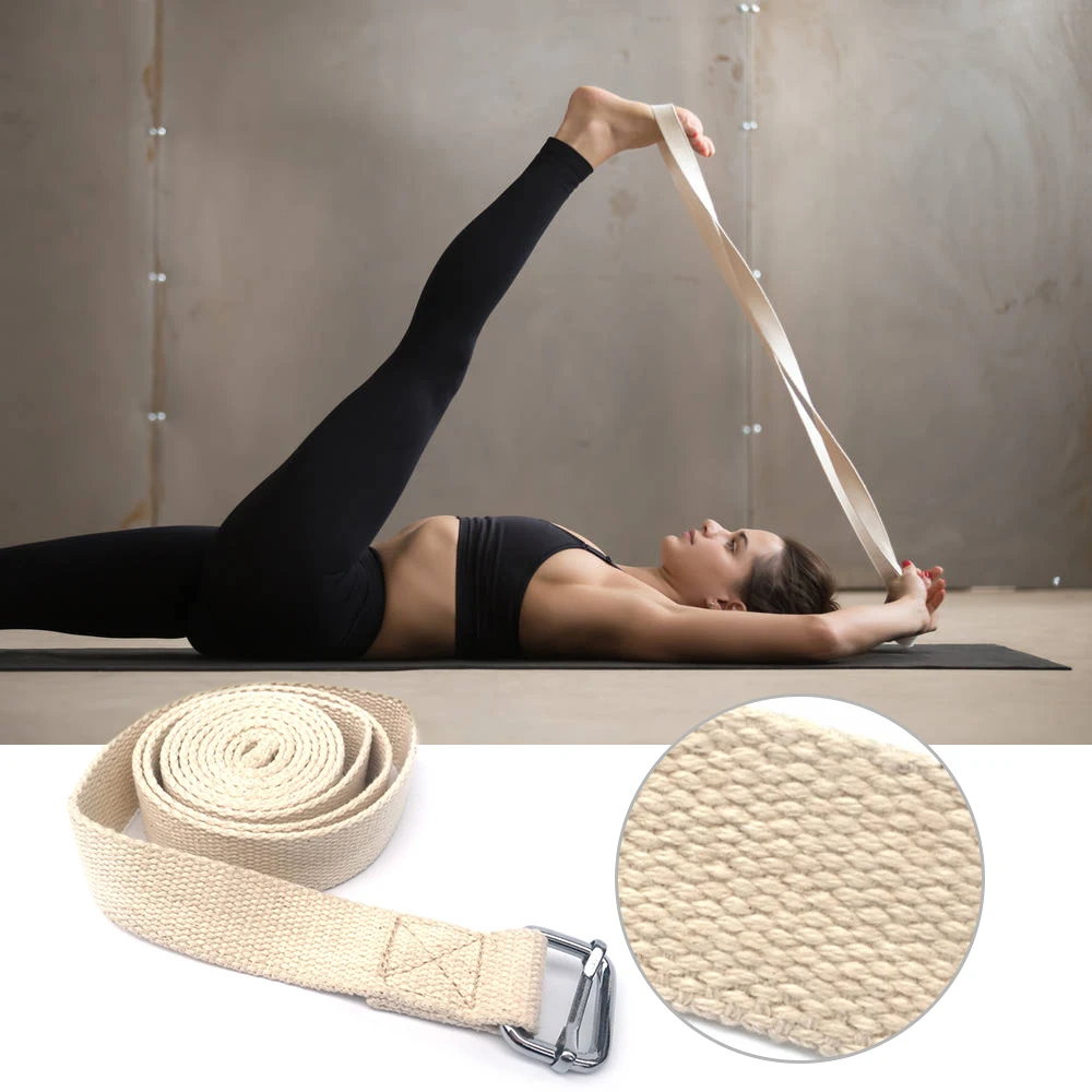 Особенности: 10 футов в длину, 0,9 дюйма в ширину. Хлопковый ремешок, мягкий и прочный для необходимой поддержки. Металлическое кольцо для регулировки. Для йога, пилатеса, растяжения мышц, фитнеса и физической терапии.