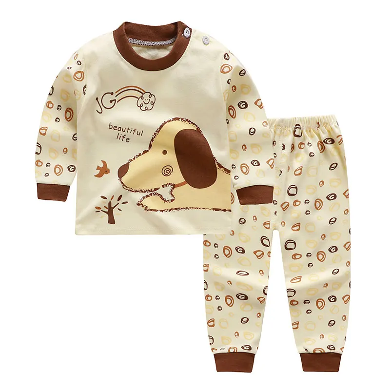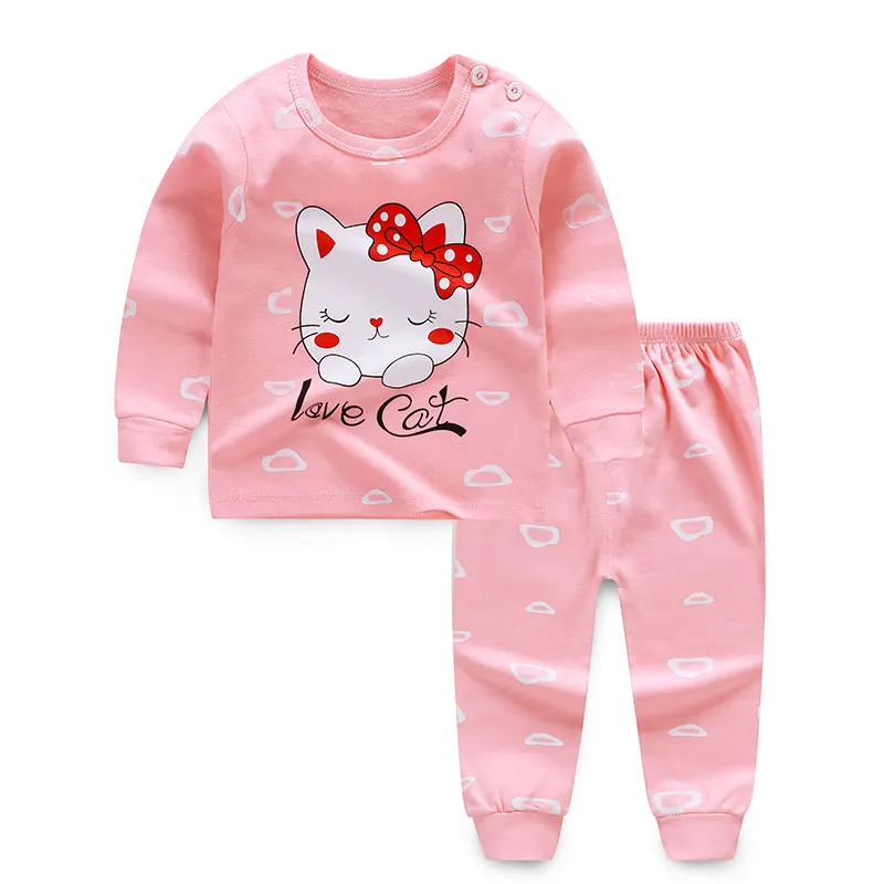 Пижамные комплекты для малышей с мультяшным принтом хлопковая одежда для сна для мальчиков осенне-весенние топы с длинными рукавами и высокой талией для девочек + штаны, 2 предмета