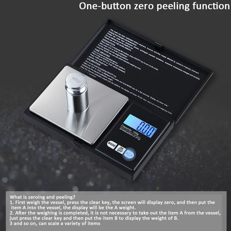 6. точность: весы позволяют весить максимальную емкость 500 г/100 г/200 г/1000 г и читаемость 0,1 г/0,01 г, высокоточные датчики обеспечивают точность.