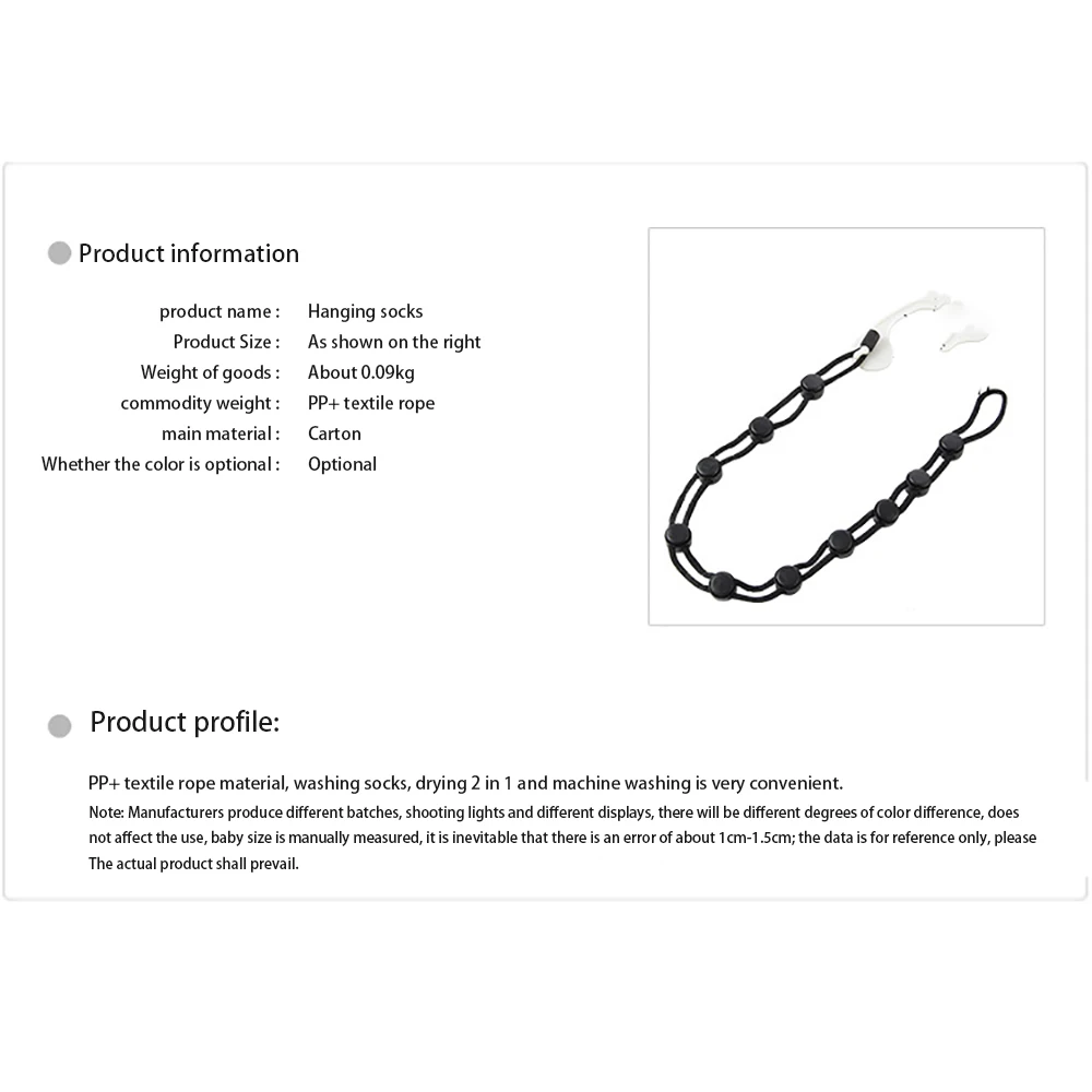 Висячая веревка для носков принимает высококачественный материал из полипропилена, который обладает хорошей тяговой силой и используется для длительного времени. Гибкую пряжку можно регулировать в соответствии с размером носка.