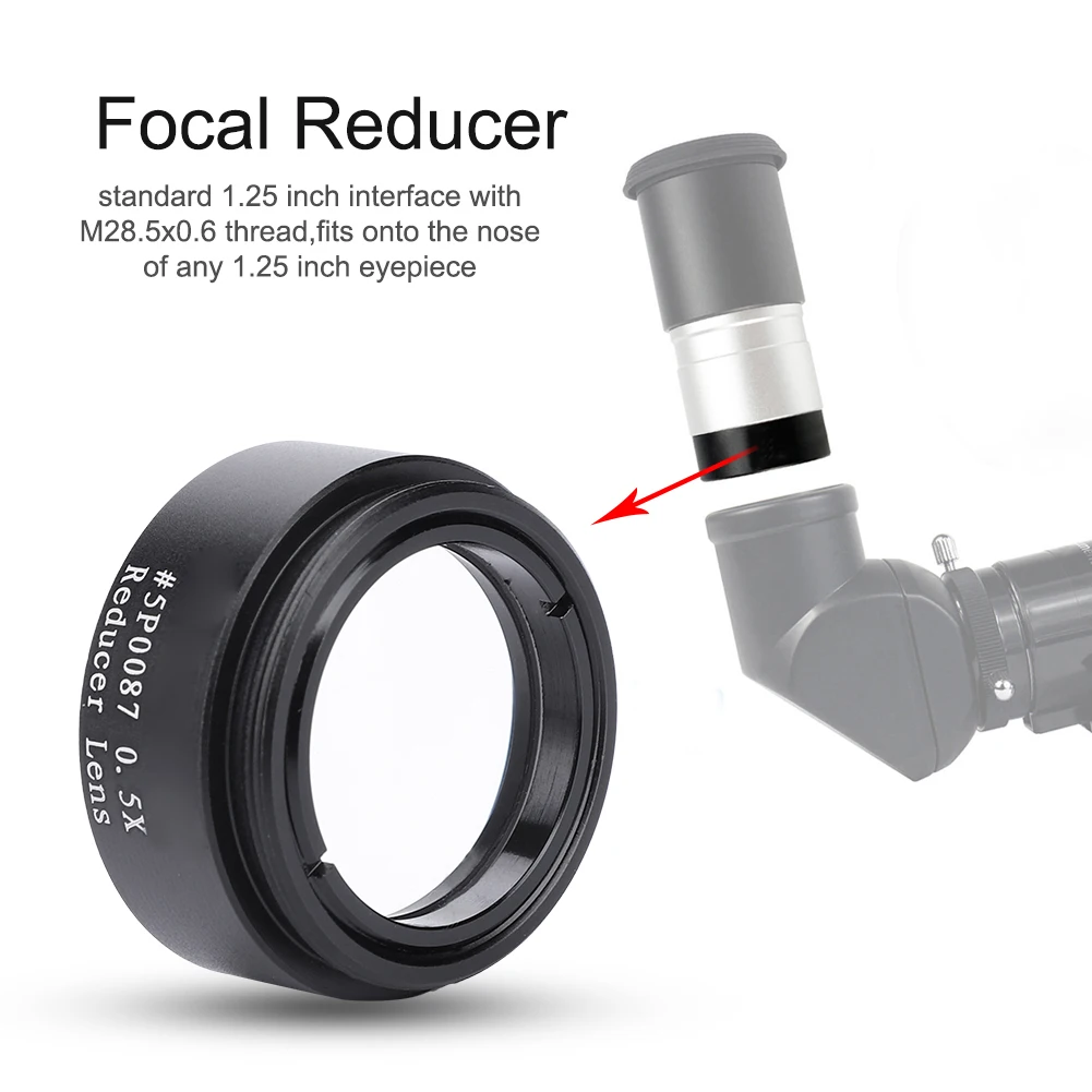 - Он может укоротить фокусное расстояние на 0,5 раза и увеличить поле зрения, обычно используется для телескопа с более длинным фокусным расстоянием.