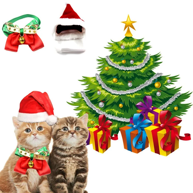 Отзывы о Забавный галстук-бабочка для кота комплект рождественской шапки костюм питомца