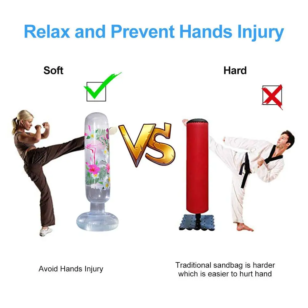 Идеально подходит для фитнеса: надувные песочницы идеально подходят для фитнеса и стресса. Улучшает координацию и гибкость, сжигает калории и уменьшает стресс, повышая гибкость и координацию рук и глаз. Каждый раз, когда вы попадаете в мяч, это также идеальный выбор для тренировок по тхэквондо. Используется для взрослых и детей.