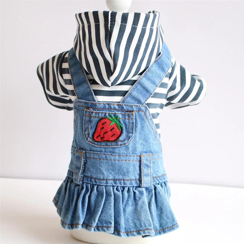 Новое модное Полосатое платье для собак, осенне-зимняя джинсовая юбка для чихуахуа, джинсовая одежда, XS-XXL 10А