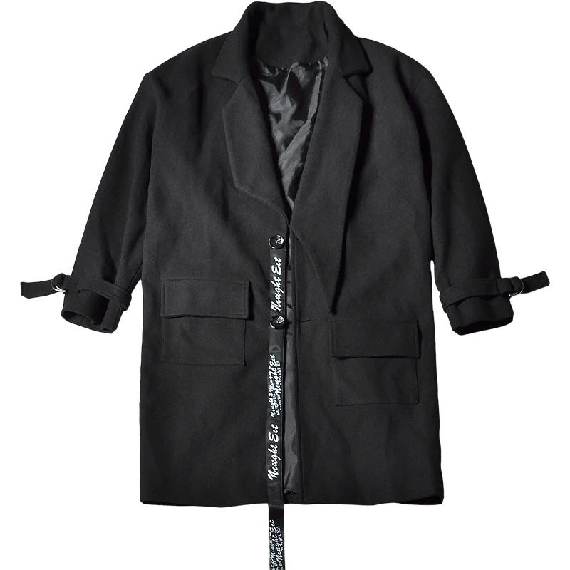 Отзывы о Мужской осенне-зимний длинный тренчкот в стиле панк с лентами шерстяная куртка