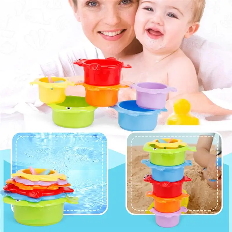 6 шт., штабелирование чашек, игрушки, красочные, милые, забавные, пластиковые игрушки для ванной, игрушки для обнаружения, Игрушки для раннего развития, игрушки для малышей