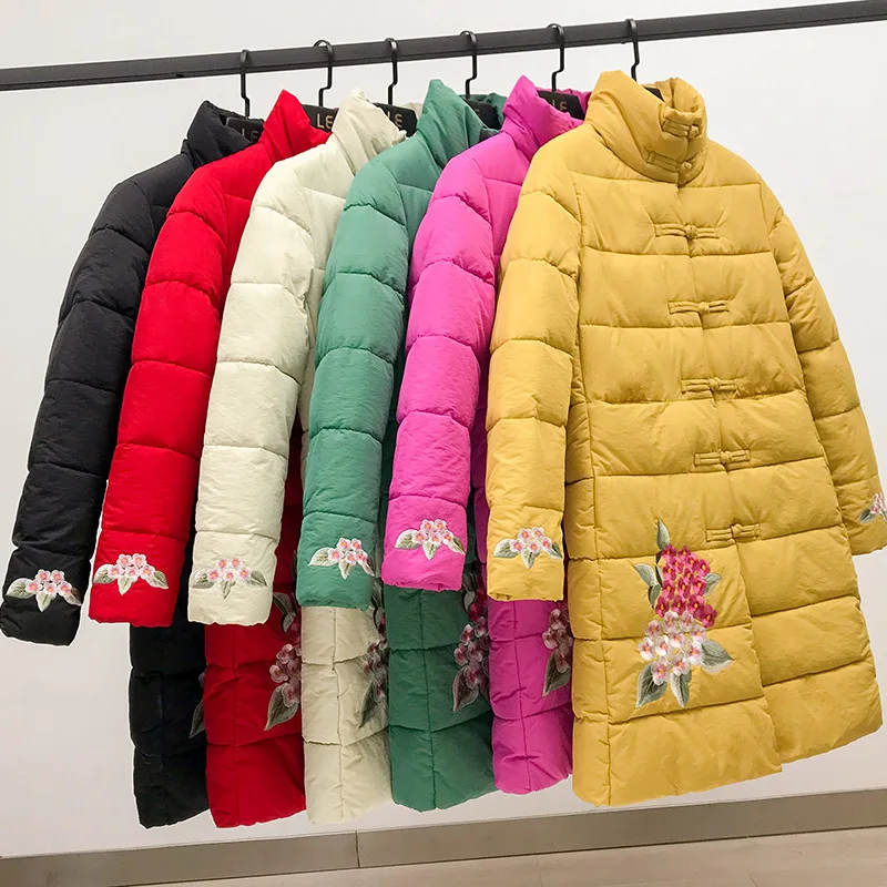 Отзывы о Женская куртка с цветочной вышивкой длинная теплая парка хлопковой подкладкой в