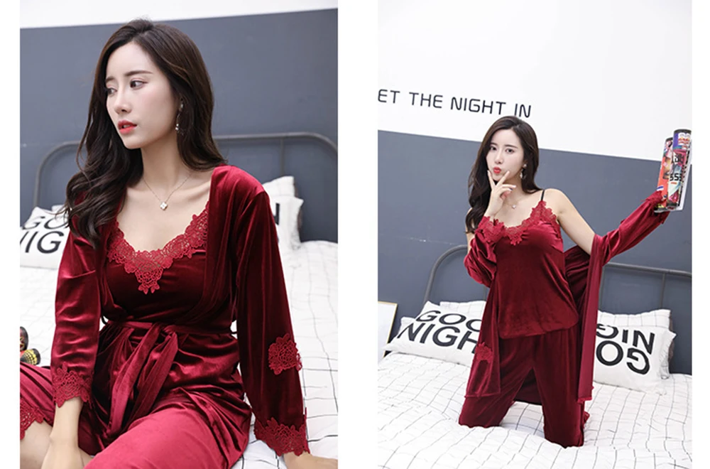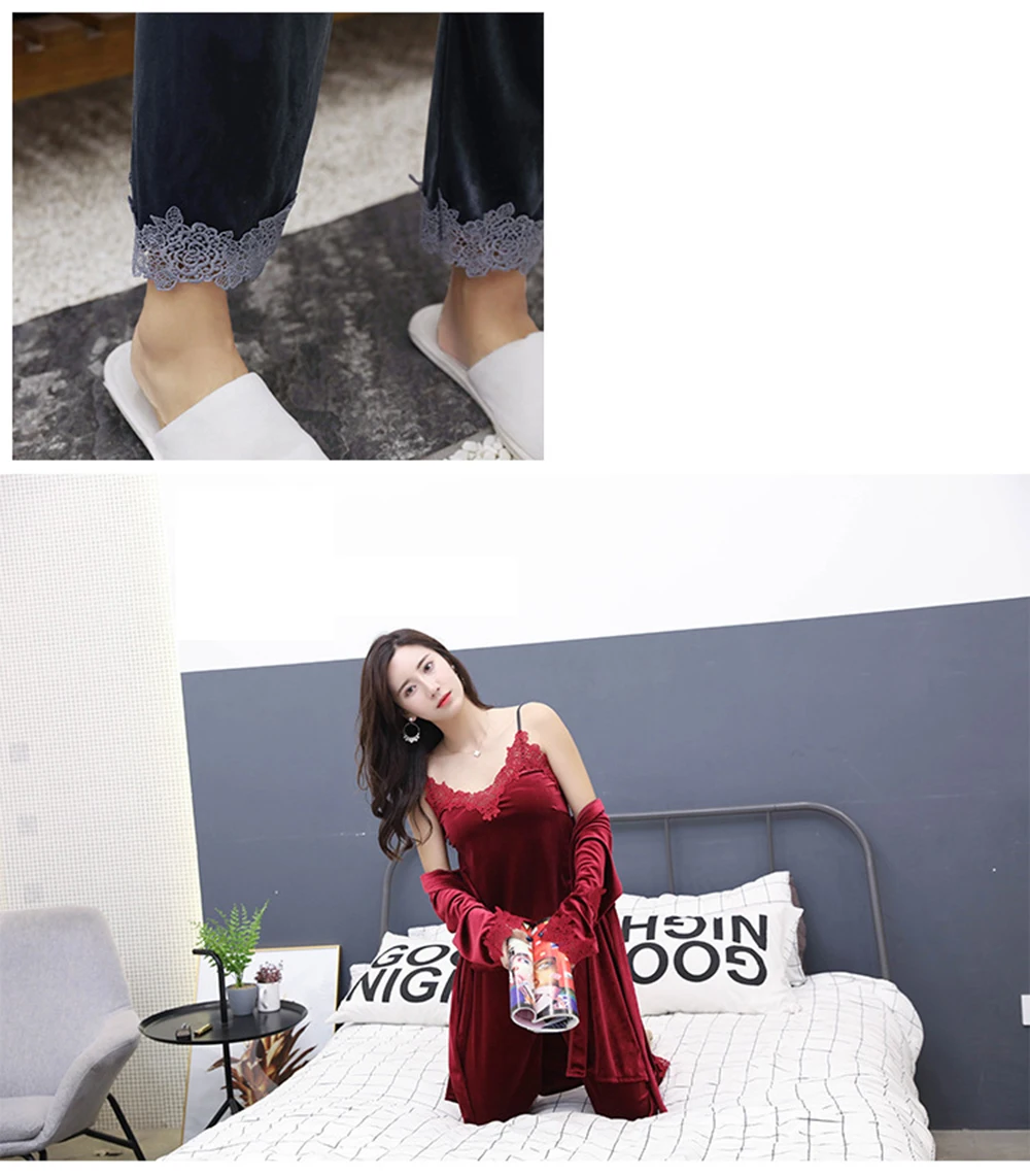 Отзывы о Одежда для сна комплект из 3 предметов бархат теплые на зиму пижамный женщин