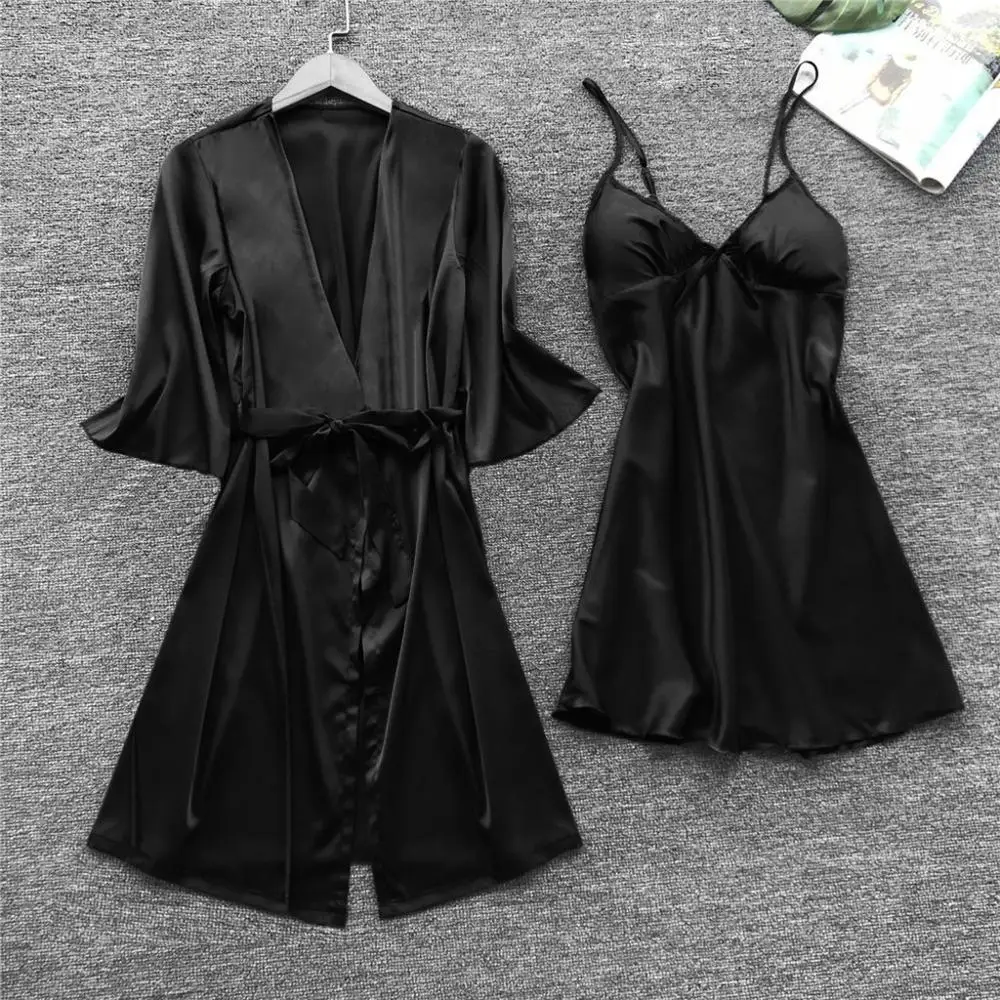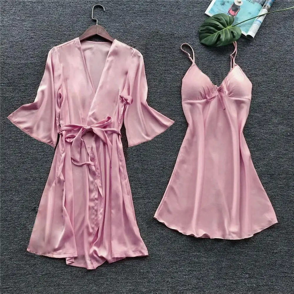 Features: 1.This set of pajamas includes a nightdress and a nightgown to make you more elegant and elegant. 2. This suit is made of silk-like material. five colors and four sizes are available. 3.It is recommended to wash with a water temperature of about 30 degrees. 4.Please refer to our detailed size chart before purchase. 5.Different displays will have a slight color difference, please don't mind Product information: Season:four season Gender:Women Occasion:sleeping,Club,party,Home ect. Material:Polyester Style:Sexy How to wash:Hand wash What you get:1 Set Sleepwear ( Without chest pad ) Tips: Our clothes all are designed for Asian figure, which means would be smaller than normal European sizes. Please refer to our own size chart, and you can find it in our pictures or from the description. If you have any questions during the purchase process, please feel free to contact us and we will be happy to help you. Hope that you can enjoy a nice shopping experience at Kaerm Store. Wish you a happy life! Note: Due to possible physical differences between different monitors, the product photography is illustrative only and may not precisely reflect the actual color of the item received. We can guarantee that the overall style displayed in the photography is accurate, however there may be differences in how the style appears during wear. This depends on other physical variables, e.g. personal body size, body shape, limb proportion, height, etc.