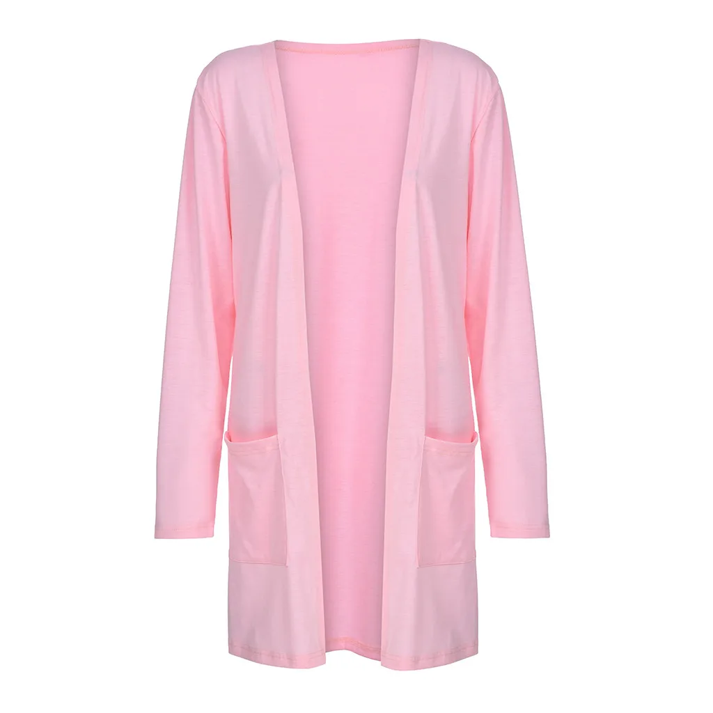 Женский однотонный кардиган с v-образным вырезом и длинным рукавом, верхняя одежда с карманамиОсобенности: