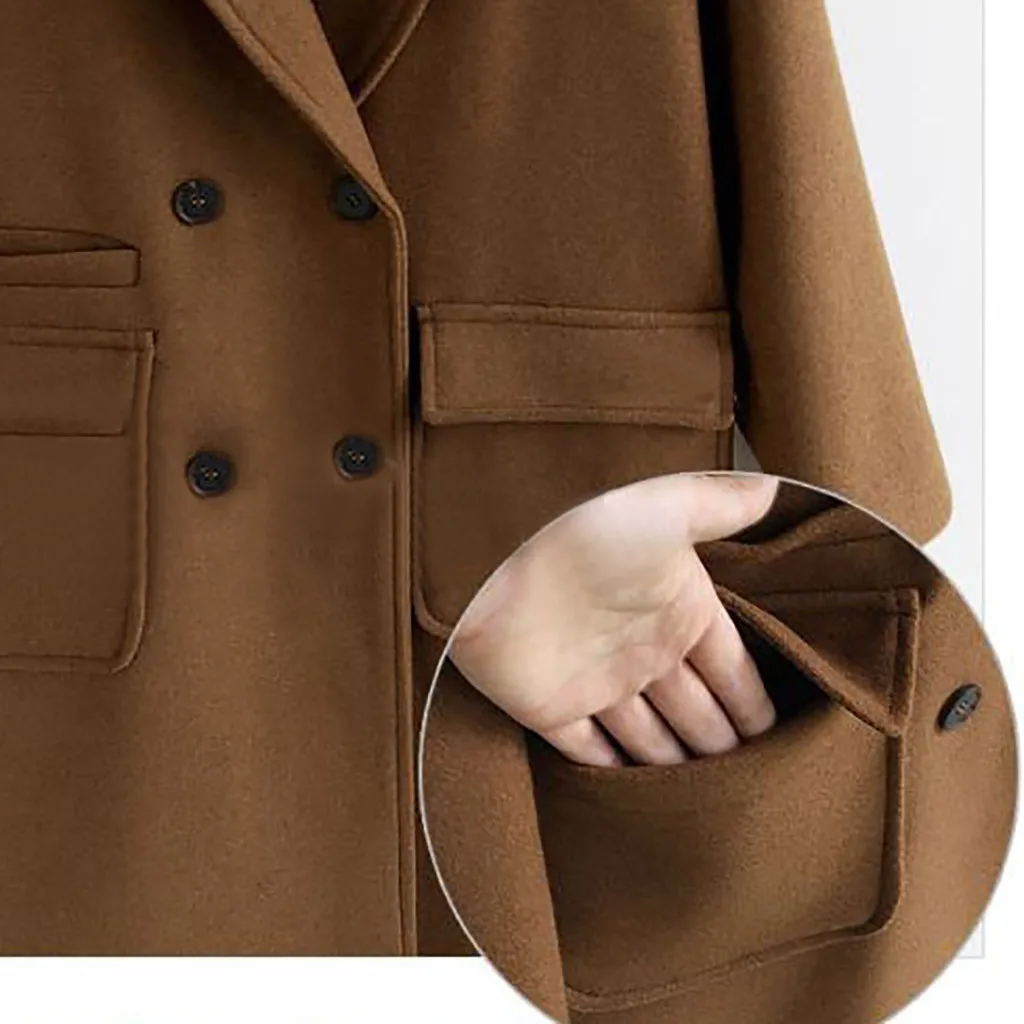 Женское зимнее шерстяное пальто с отворотом, куртка с большим карманом, верхняя одежда