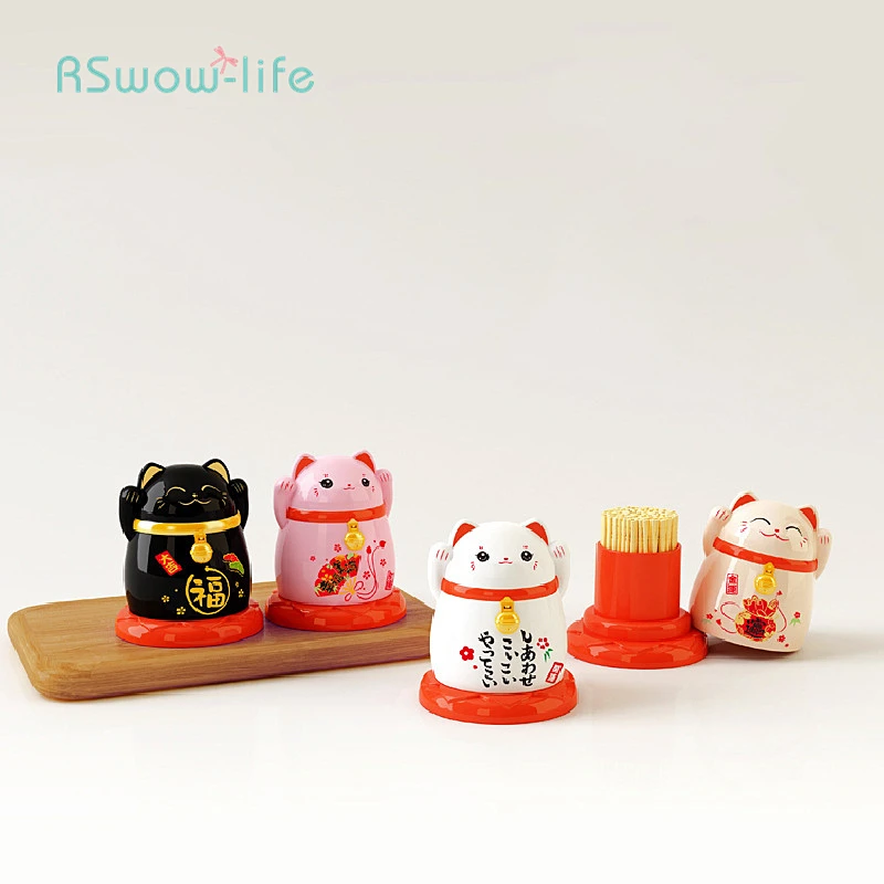 Креативные милые японские-Стиль с изображением из мультфильма Lucky Cat зубочистка банок картриджи Подставка Для Зубочисток пластиковый пыленепроницаемый украшение дома