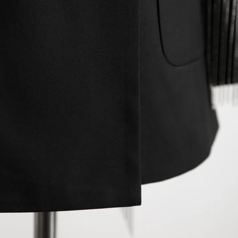 Отзывы о Женское пальто на одной пуговице QING MO черное приталенное с бахромой 2019 | Женская