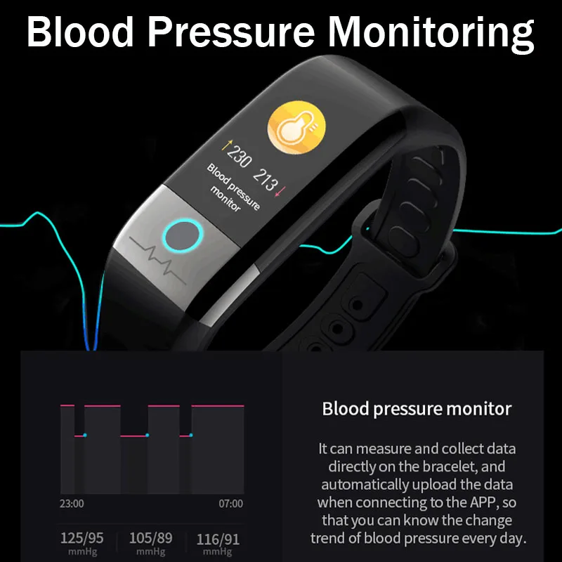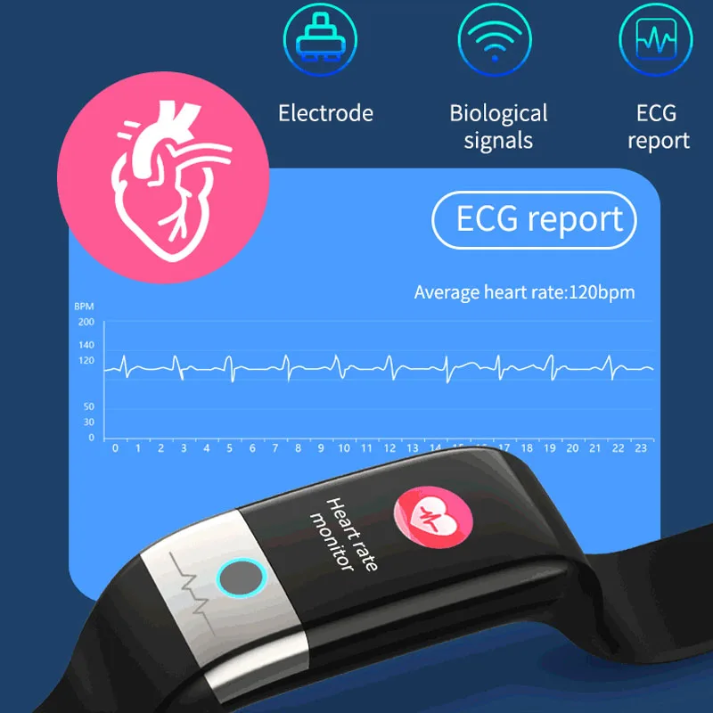 Характеристики параметров: 1. Поддержка языков (9 видов): 2. Русский, немецкий, итальянский, японский, французский, упрощенный китайский, Английский, португальский, испанский 3.Bluetooth : BT4.0 4. Аккумулятор: 125 мАч 5. Экран: 1,08 дюймовый цветной экран IPS Разрешение: 128*220 6. Совместимая система: Android 5,0 и выше, IOS 9,0 или выше 7. Время зарядки: около 2 часов 8. Степень водонепроницаемости: IP67 (Не используйте умный браслет в морской, горячей или теплой воде!) Особенности 1. Отображение времени/часов, шаг, калории, расстояние, время сна, удаленное фото, отображение ВКЛ/ВЫКЛ 2. Обнаружение пульса, ЭКГ, артериального давления (мониторинг пульса) 3. Стандартная функция двигателя (шаг, расстояние, калории) 4. Мониторинг сна (время сна, качество сна, днем и ночью) 5. Напоминание о звонках, SMS-напоминание, QQ-напоминание, напоминание о WeChat, Skype, facebook, напоминание whatsApp. 6. Измерение одной кнопкой ЭКГ PPG, совместное использование ЭКГ, индекс здоровья HRV (индекс усталости, физическая и умственная нагрузка, физическая фитнес, сердечная функция) 7. Просматривайте перемещения родственников и друзей, данные измерений Примечание: После получения часов, пожалуйста, сначала зарядите. Потому что после длительного периода логистики часы разряжаются Перед использованием отсканируйте QR-код в руководстве, чтобы загрузить приложение и подключить его к часам с помощью приложения.