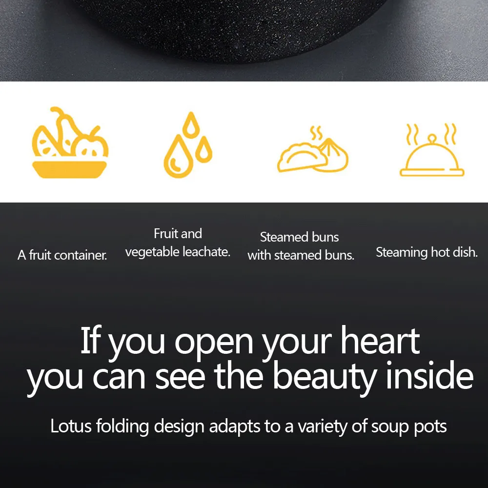 Посылка включает в себя: 1 * Пароварка для овощей Технические характеристики: -Высококачественный пищевой материал. -Изготовлено из 18 панелей, можно парить различные продукты. -Паровая еда сохраняет вкус и питательные вещества. -Складная конструкция для удобного компактного хранения. -Расширяется и настраивается на различные кастрюли, сковородки или скороварки. -Съемная Центральная ручка для отпаривания больших продуктов питания. -3 ножки на дне держат еду отдельно от горшка. -Несколько функций: его можно использовать как контейнер или конфетную пластину. -Простота в использовании: Просто поместите корзину, ноги вниз. -Безопасная Посудомоечная машина позволяет легко и быстрее чистить.