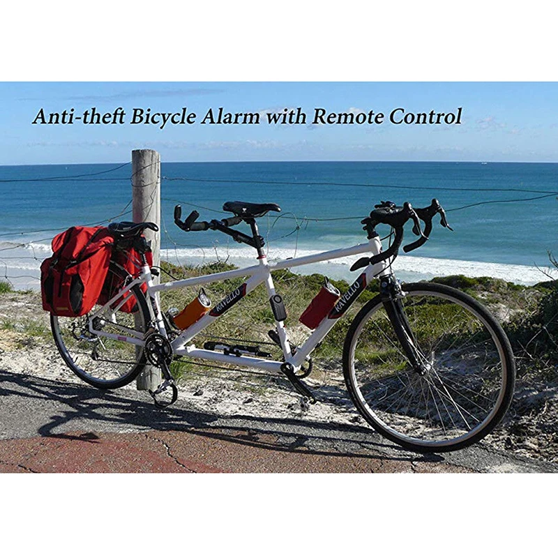 Эта безопасная велосипедная сигнализация Компактная и портативная, легкая и удобная для переноски. Беспроводной пульт дистанционного управления, прост в использовании.