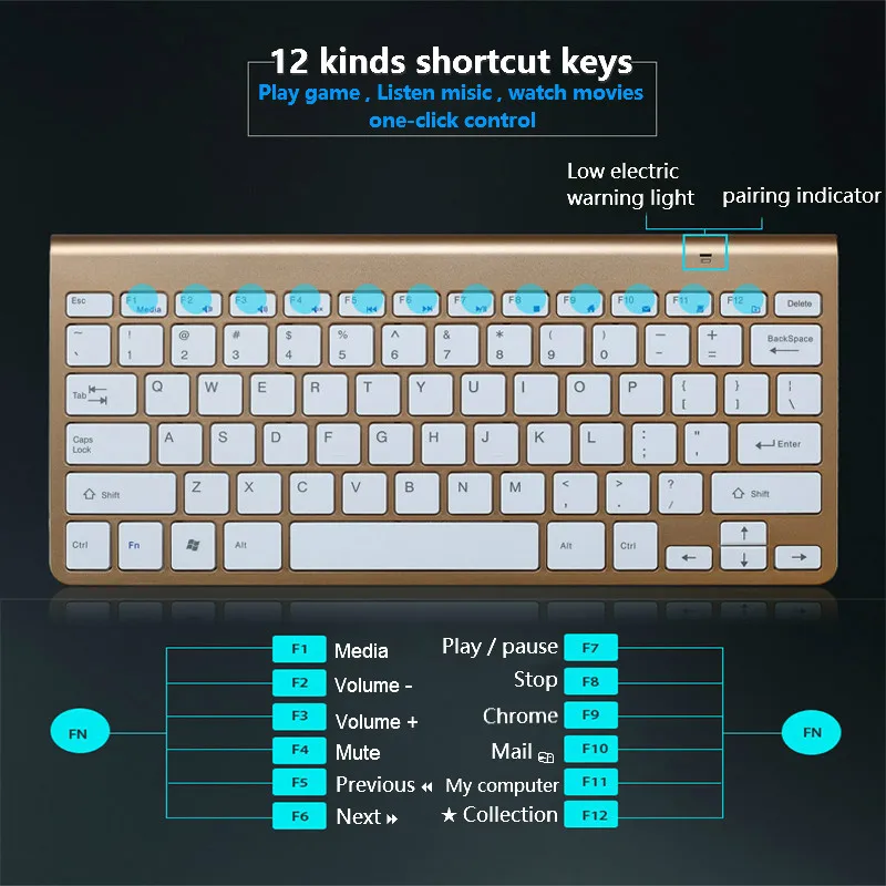 -Низкий индикатор voirage aiarm продолжает напоминать о замене батареи-несколько функций автоматического отключения, приёмник или выключение, мышь сразу же попадет в спящий режим, экономя больше энергии, ориентированной на человека, увеличение серии мультимедийных клавиш