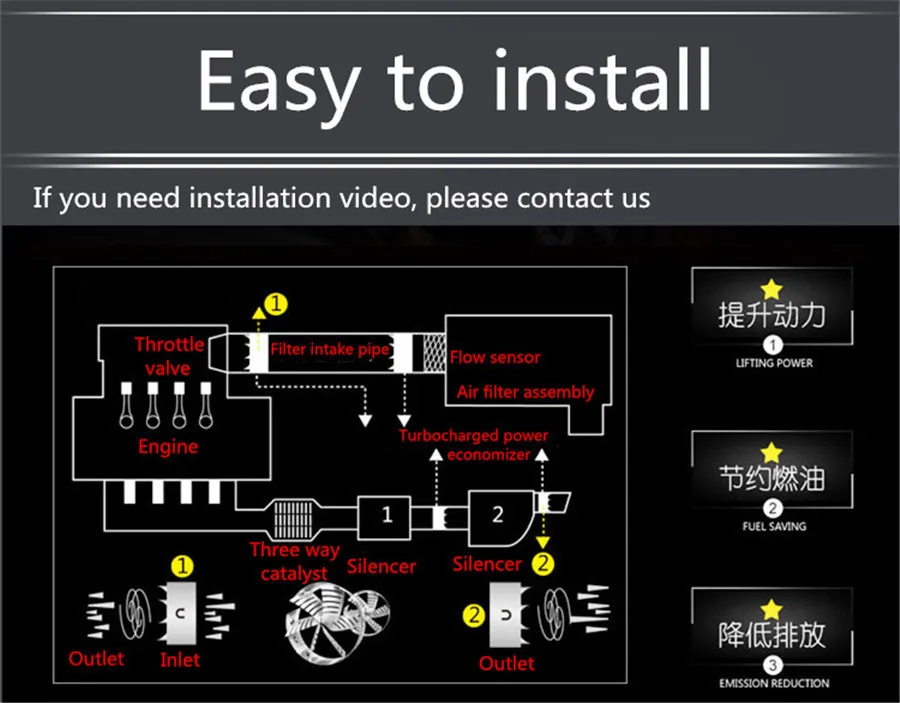 Это продукт без шума и вращающегося впускного потока воздуха при статических условиях. Из-за полного сгорания, увеличения мощности, это, безусловно, изменит рабочее состояние двигателя. Это было бы значительно снижением шума и более удобно для езды.