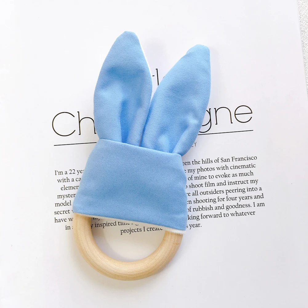 Мягкие грызунки для новорожденных, деревянное кольцо, детский кролик грызунок в форме уха, игрушка для прорезывания зубов с ушками кролика, безопасный успокаивающий подарок для жевания, новинка