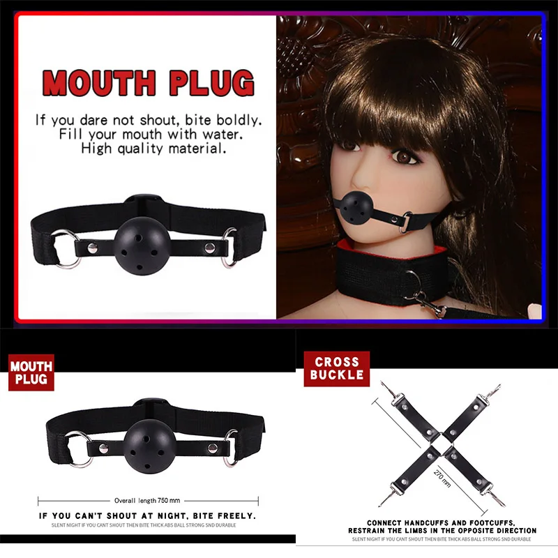 [Материал]: кожа, нейлон, плюш [Цвет]: черный/красный // розовый/фиолетовый [Функция]: Флирт для пар, игры для взрослых Посылка входит] : 1 набор секс-игрушек (в том числе: 1 пара наручников, 1 пара наручников, 1 кляп для рта, 1 хлыст, 1 mesk sex,1 ошейник, 1 пара зажим для сосков) [Размер]: как на изображении (регулируется)
