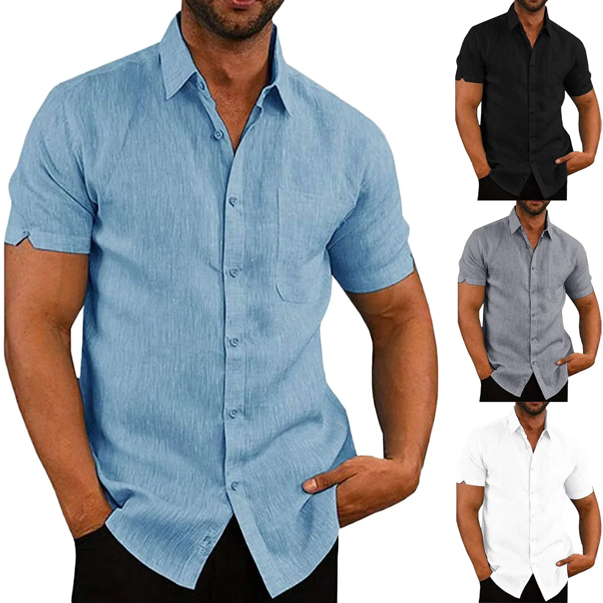 Отзывы о Рубашка Мужская льняная с коротким рукавом свободная Повседневная блуза из