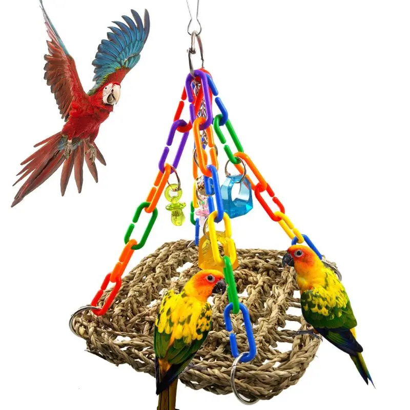 Отзывы о Птица Попугай качели игрушка попугаи клетка висит Foragaing жевать водорослей коврик