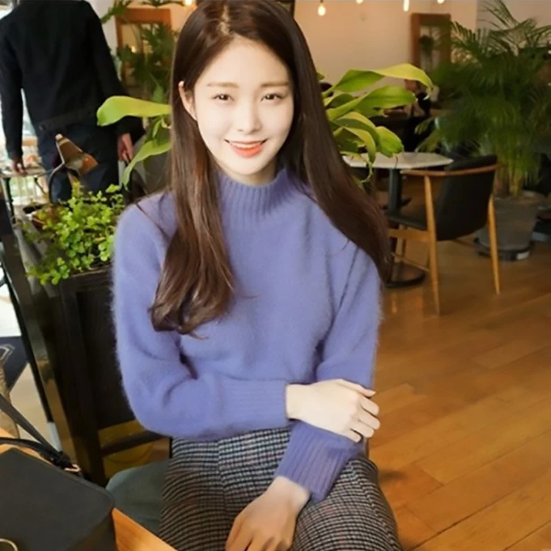 Отзывы о 2019 Зима Новая мода утолщенная теплая водолазка мохер женские свитера с