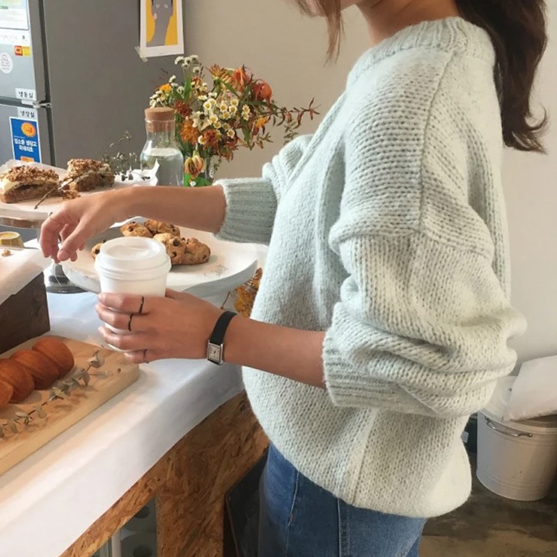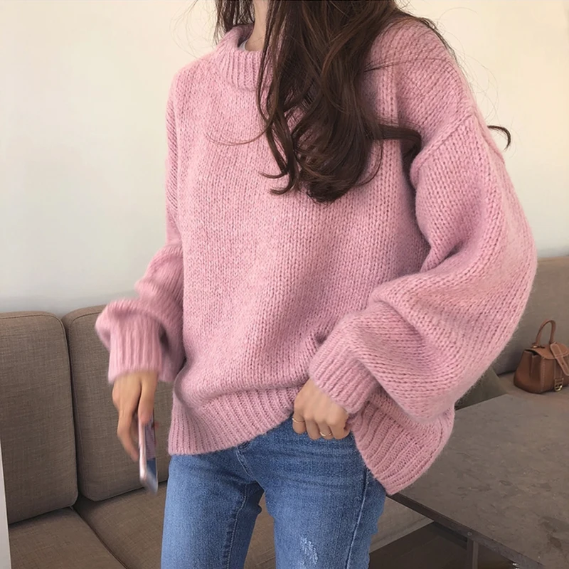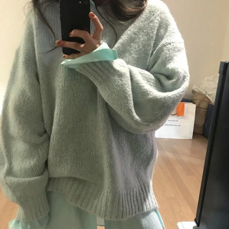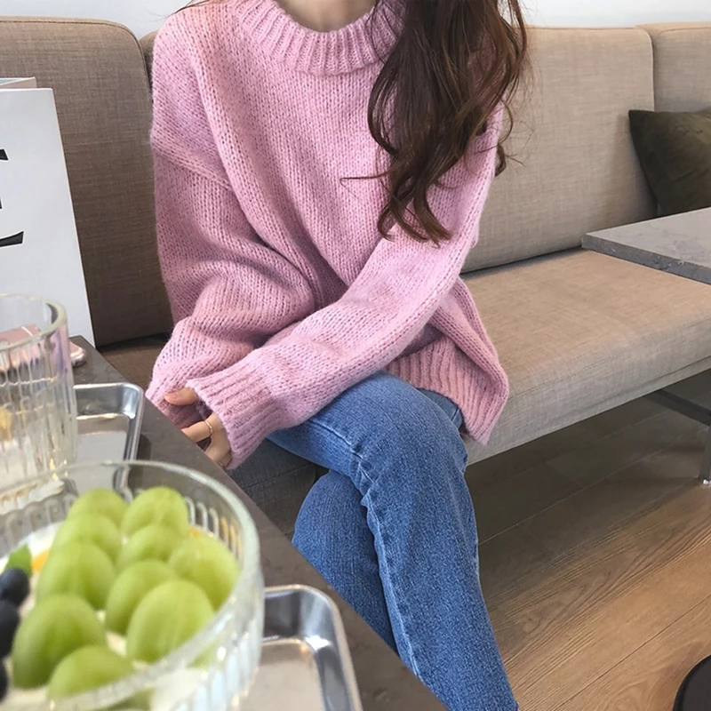 Отзывы о Женский вязаный свитер GALCAUR белый Повседневный с круглым вырезом и длинными