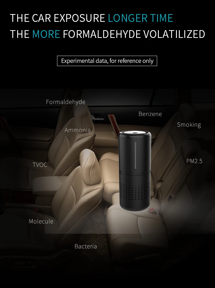 1. Эффективно удаляет более 100 видов загрязнения в автомобиле: формальдегид | Пыль | PM2.5 | Вторичный дым, мелкие частицы | TVOC | Вредные газы | 2. Очистите увлажненный воздух, чтобы воздух был свежим и снимал усталость, и улучшите эффективность работы.