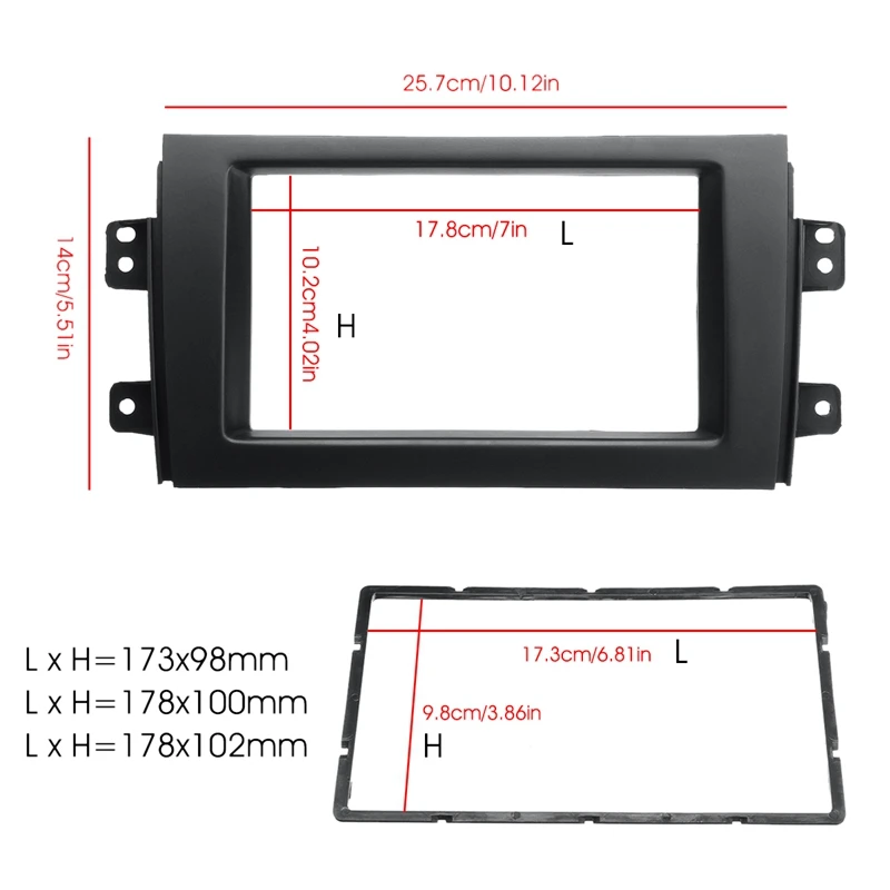 2 DIN имеет окно 173*98 мм (ширина * высота) / 178*100 мм/178*102 мм