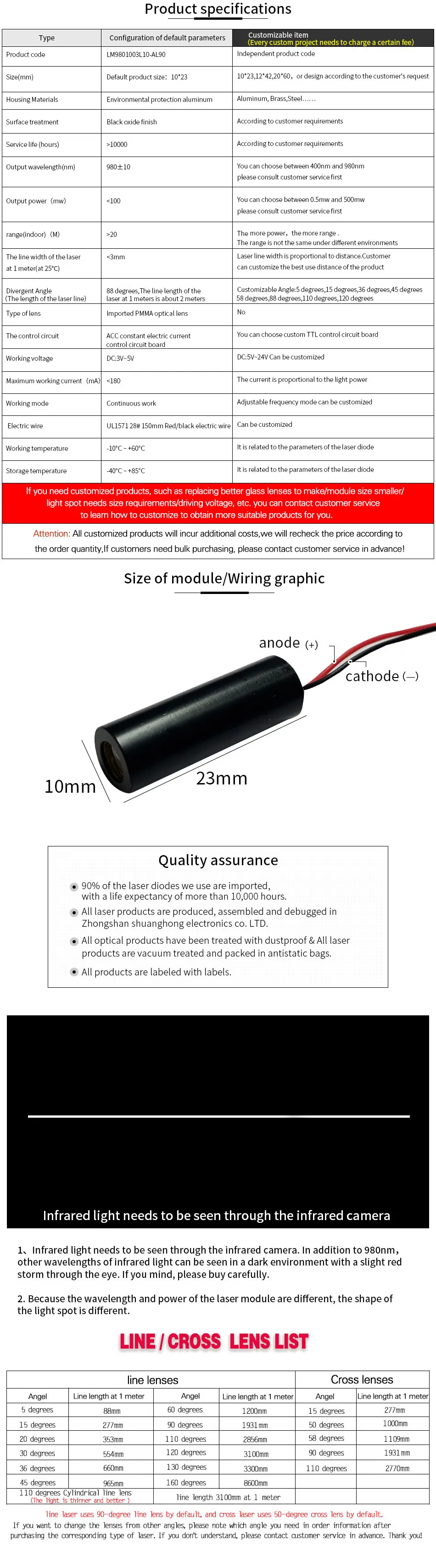 Отзывы о Абсолютно Невидимый 100 нм МВт инфракрасный лазерный модуль ИК Горизонтальное