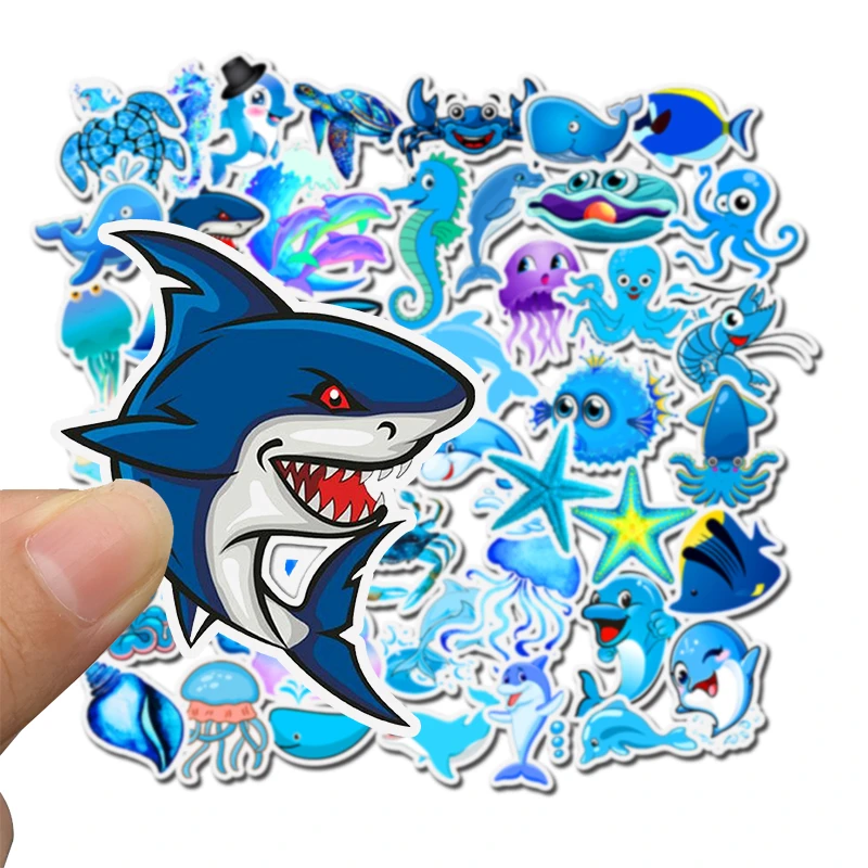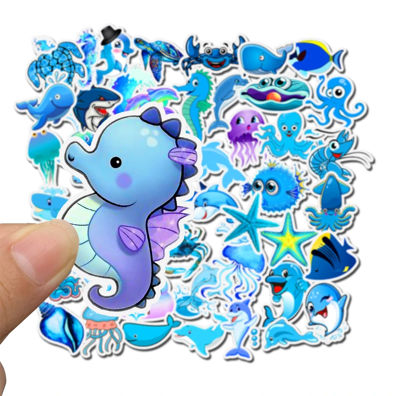 49 шт./компл. синий океан Мультфильм морских животных рыбы каракули наклейки для ноутбука ТВ холодильник Водонепроницаемая наклейка с велосипедом на стену игрушка для детей