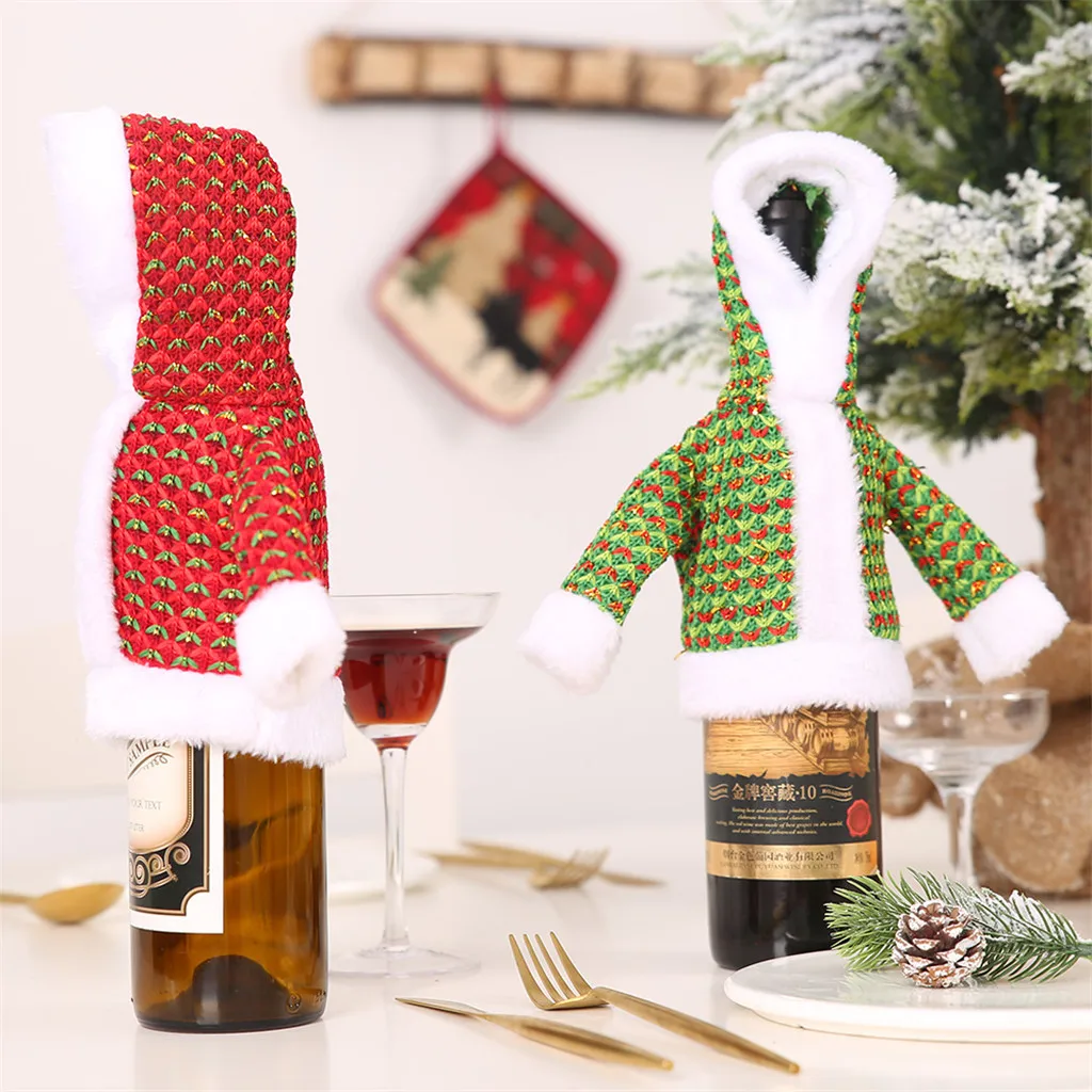Это бутылка красного вина с двумя вариантами, красный и зеленый. Милый Декор, добавляющий новый стиль вашему Рождеству. Это также делает ваше вино более аппетитным.