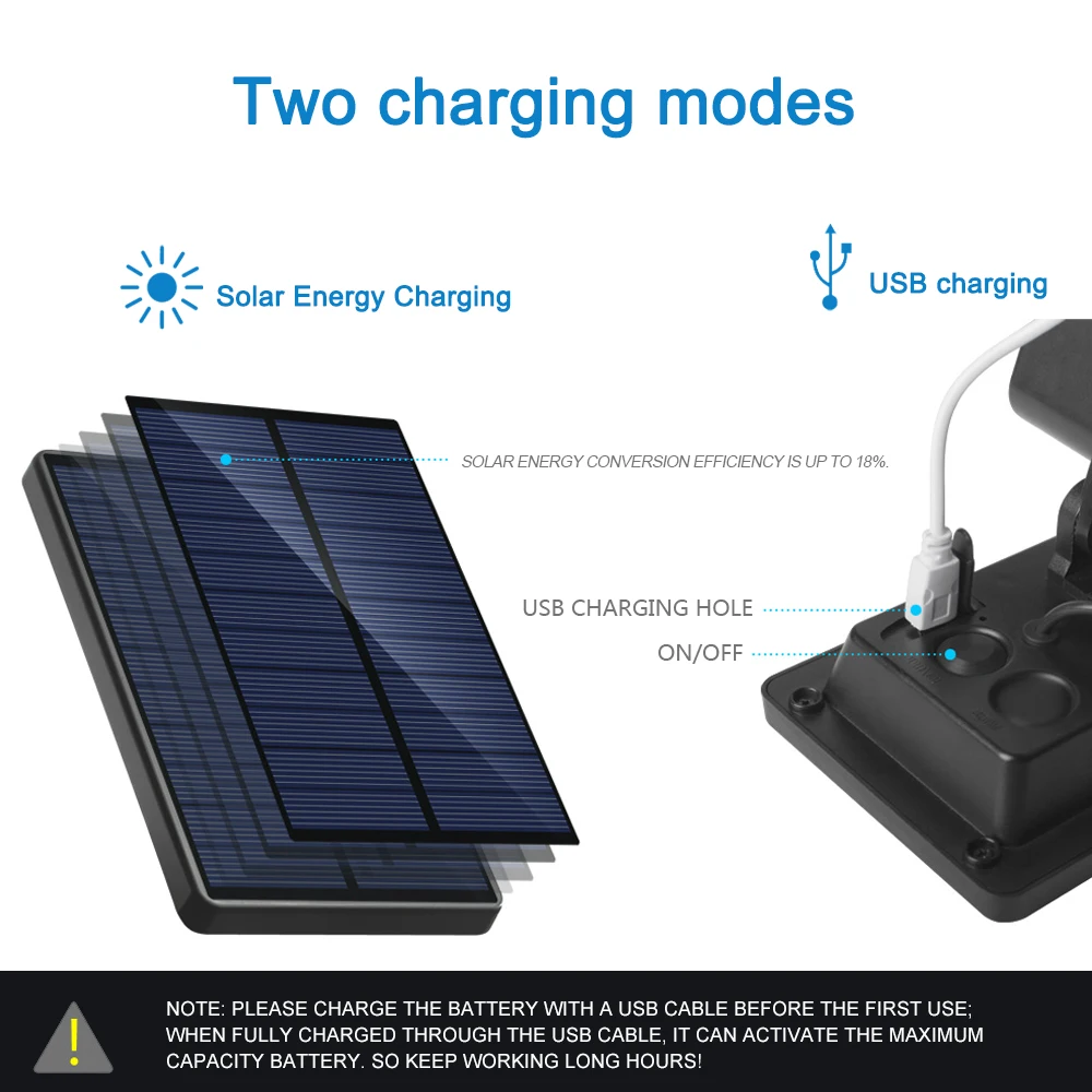 Два способа зарядки: солнечная зарядка, зарядка через USB